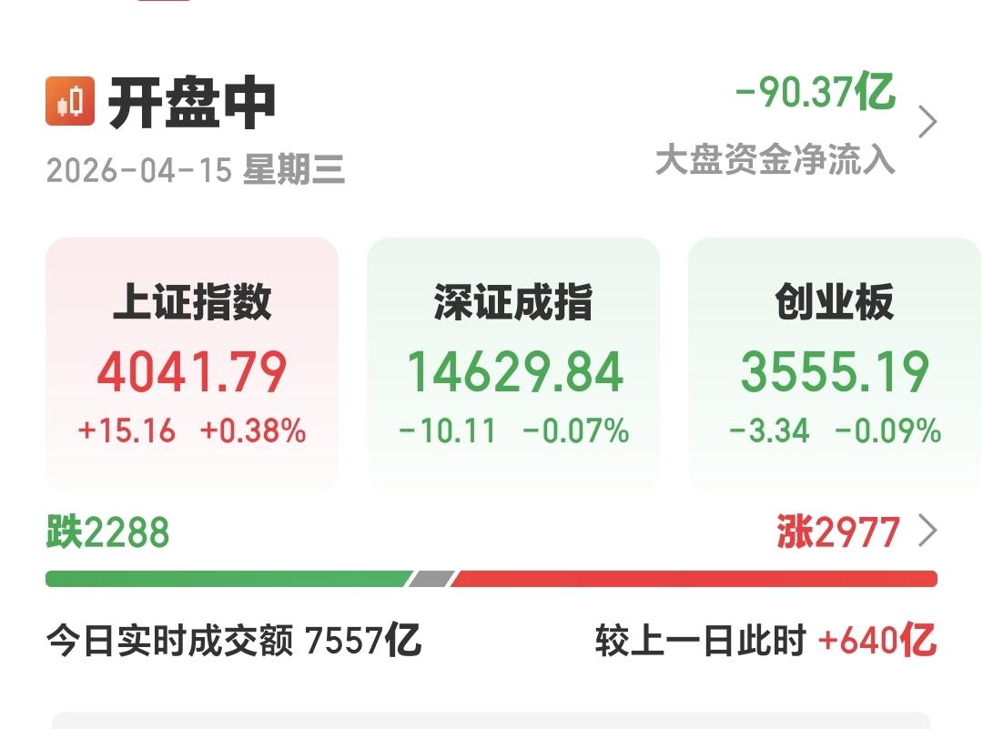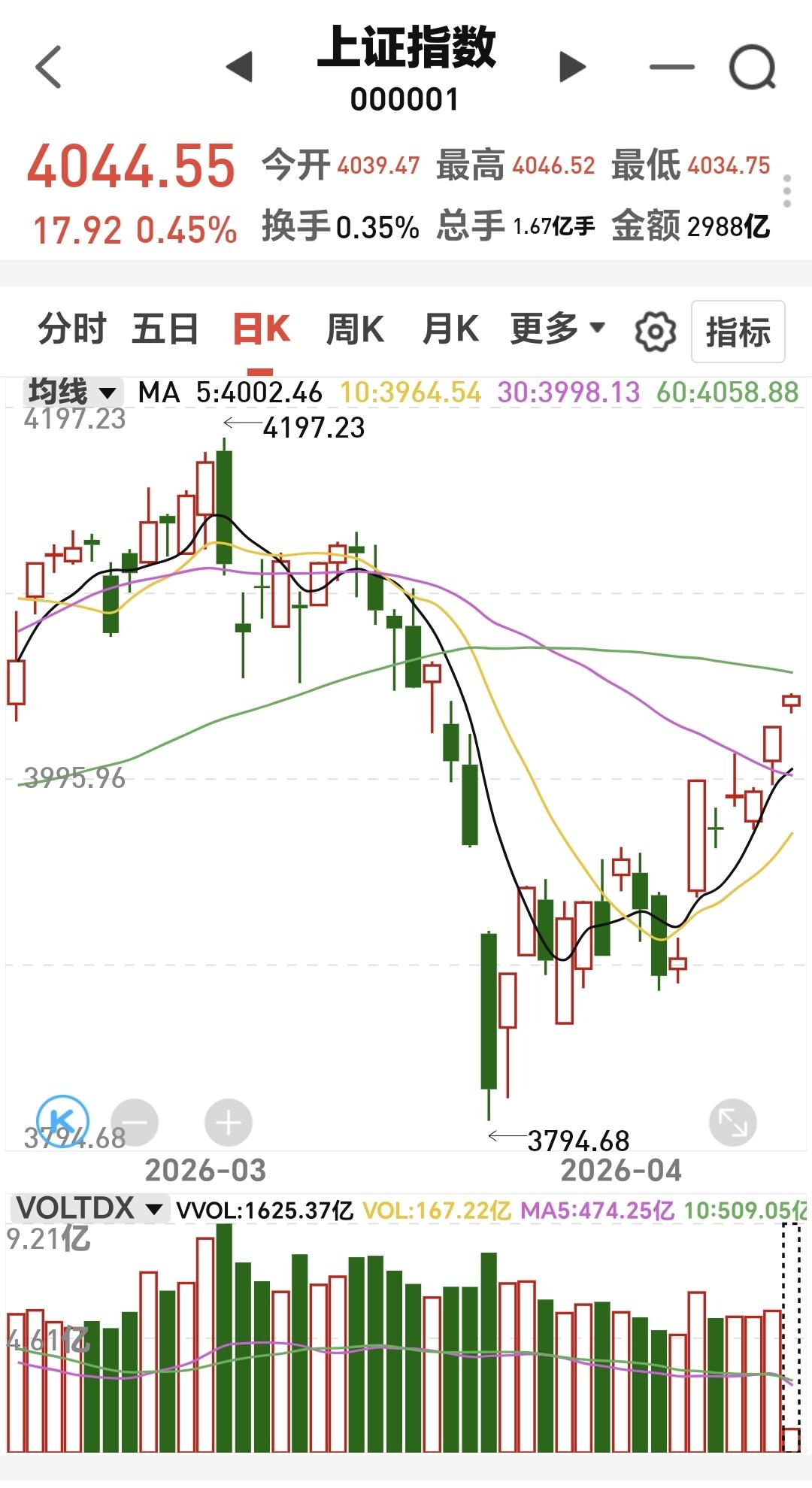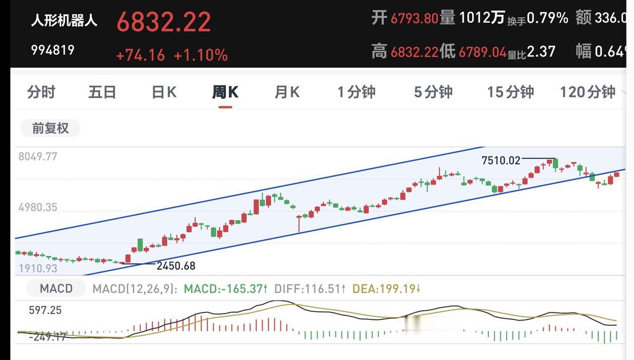 基金:机器人板块和商业航天板块应该怎么办 今天市场高开,三大指数都是高开,创业板指开盘上涨了1.06%,开于3596点,上证指数开盘上涨了0.32%,开于4039点。 盘以后指数小幅度震荡,盘中最高4046点,盘中最低4034点,上下只有12个点的幅度,黄色线在蓝色线下方,两条线之间的敞口不大,黄色线能够跟随蓝色线涨跌,继续观察两条线的位置会不会有变化。 整个股票市场,上涨2977家,下跌2288家,两市累计成交7557亿,相比于上一个交易日同期放量了640亿,主力资金净流出90亿。 主力资金净流入最多的三个板块是:有色金属板块,黄金板块,一带一路板块,主力资金净流出最多的三个板块是:人工智能板块,信息技术板块,电子板块。 整个市场上涨幅度最大的三个板块是:商业航天板块,恒生科技板块,机器人板块,下跌幅度最大的三个板块是:锂矿板块,煤炭板块,油气资源板块。 持有基金现在盘中估值上涨了2017元,盈利金额最大的三个板块是:创新药板块,芯片半导体板块,先进制造板块,亏损金额最大的三个板块是:新能源汽车板块,证券板块,AI应用板块。 商业航天板块日线级别已经上涨突破了下跌通道的上轨线,今天是继续上涨,如果这个突破是有效突破,短线的人可以考虑要不要进场。 商业航天板块周线级别处于上涨通道中,这个板块保持着上涨趋势,今天的上涨并没有改变这样的上涨趋势,长线持有的人可以继续持有。 机器人板块今天上涨,这个板块处于日线级别下跌通道中,今天的上涨并没有能够突破下跌通道的上轨线,今天的上涨还没有改变日线级别的下跌趋势,短线的人继续注意风险,想进场的人耐心等待上涨突破日线级别下跌通道上轨线的时候,再考虑要不要进场。 机器人板块周线级别处于上涨趋势破位中,今天的上涨来到了这个上涨通道下轨线附近,近期观察能不能重新回到原来的上涨通道中,还是会在这里遇阻回落。 现在的成交量相比于昨天放量超过了800亿,但指数的上涨幅度并不大,还是存在着放量滞涨的嫌疑,继续观察盘面的变化。 大家帮忙评论点赞,转发和分享,谢谢大家的支持。