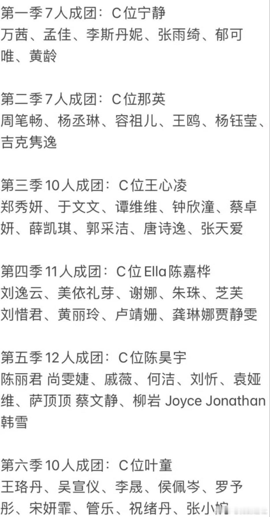 历届浪姐成团人数历届浪姐C位历届浪姐成团人数及C位