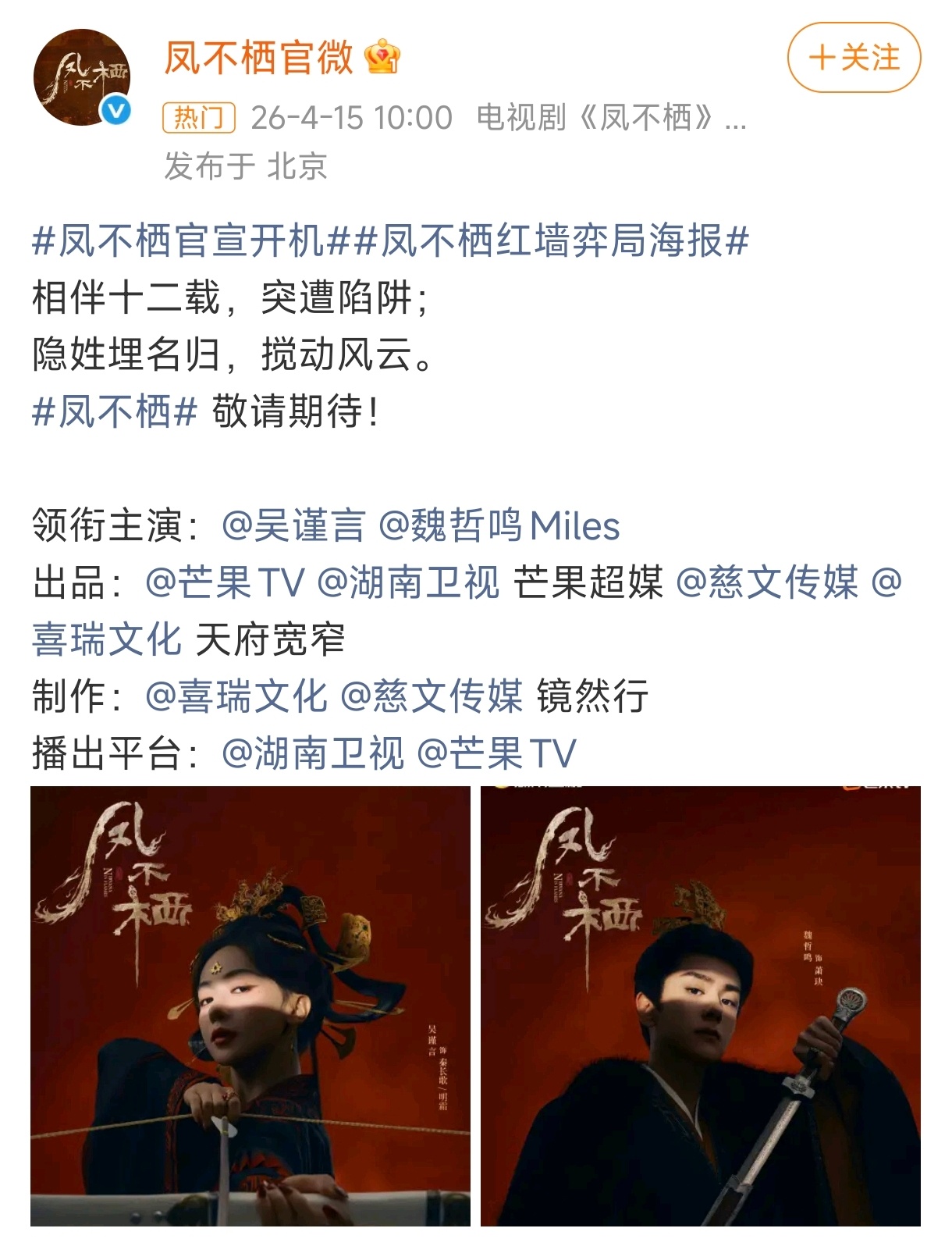 凤不栖开机海报凤不栖吴谨言魏哲鸣开机海报来啦!眼神杀🈶~凤不栖吴谨言魏哲鸣开机海报凤不栖官宣开机