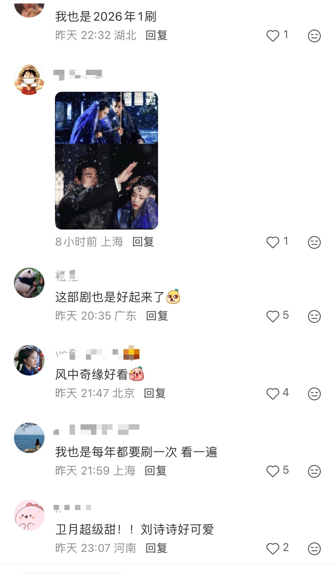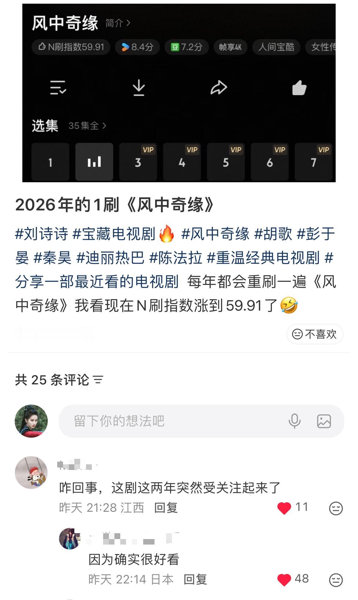 刘诗诗彭于晏胡歌的《风中奇缘》n刷指数近60了,居然还有人新入坑的,一姐剧都好长尾