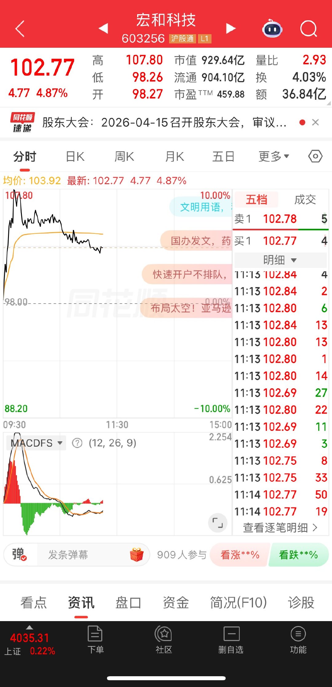 今日,金风没动,宏和做了t。尾盘继续满上