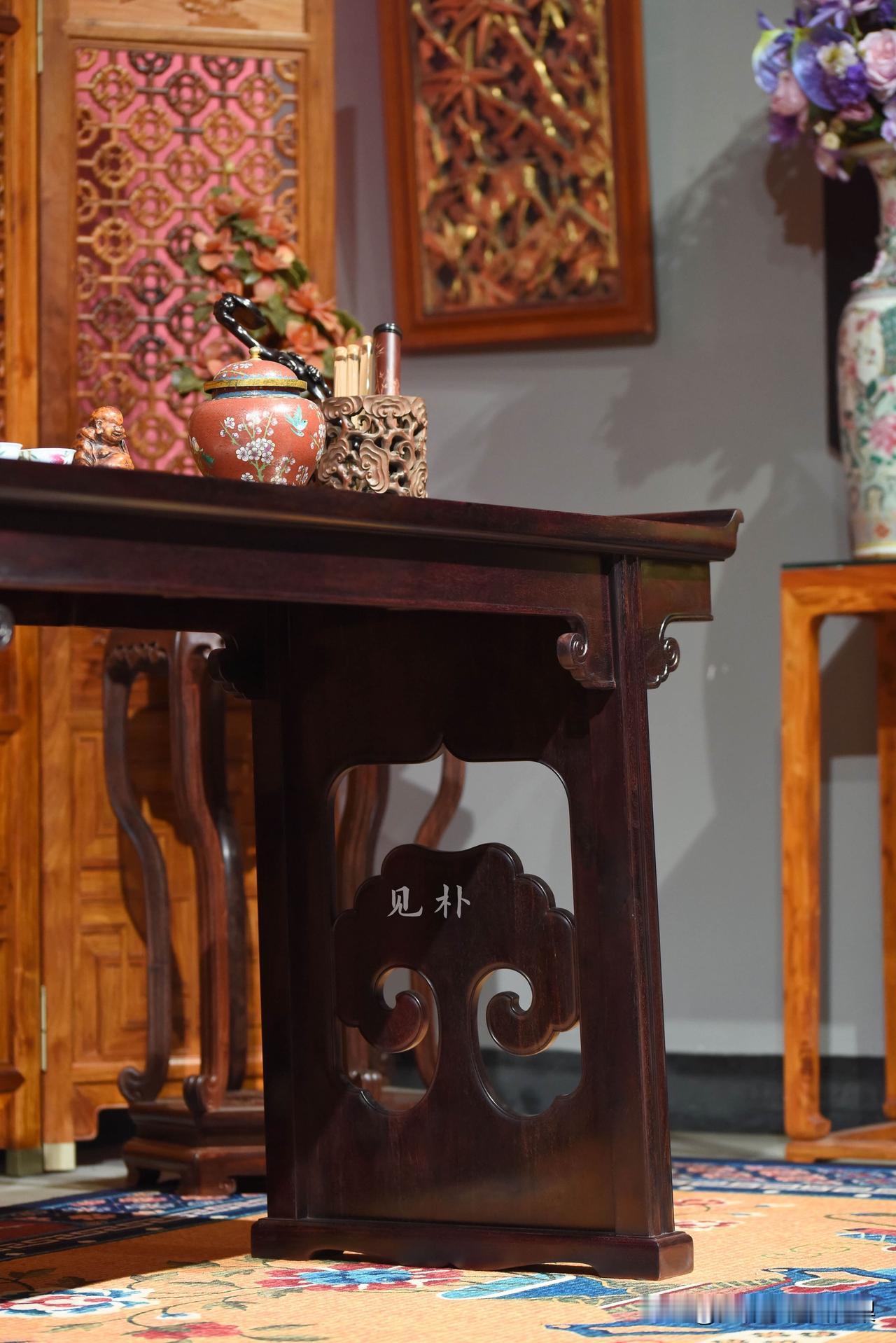挑战全球金星最满小叶紫檀翘头案 褪去繁复雕琢,回归木之本真。这张明式画案以紫檀为骨,以匠心为魂,将中式文人的清雅与克制,融于每一处线条、每一道工艺。案上可置文房清供,可铺纸挥毫,于一室之内,静享慢下来的东方生活。