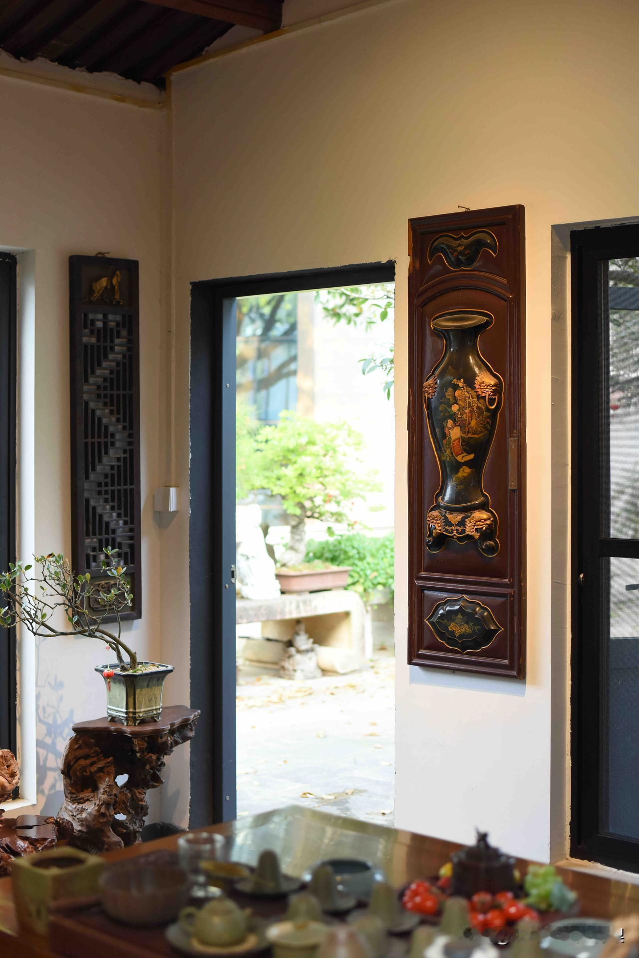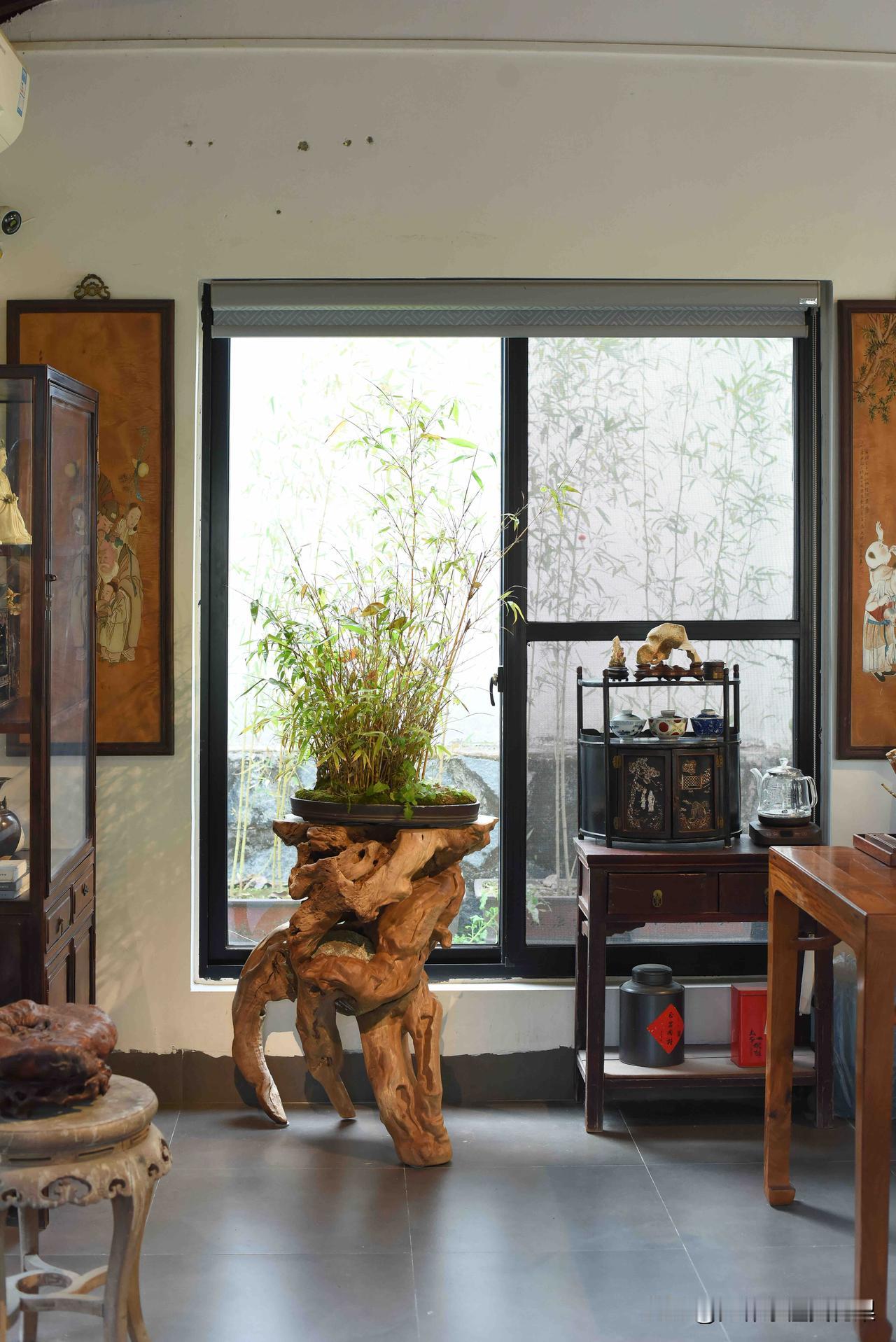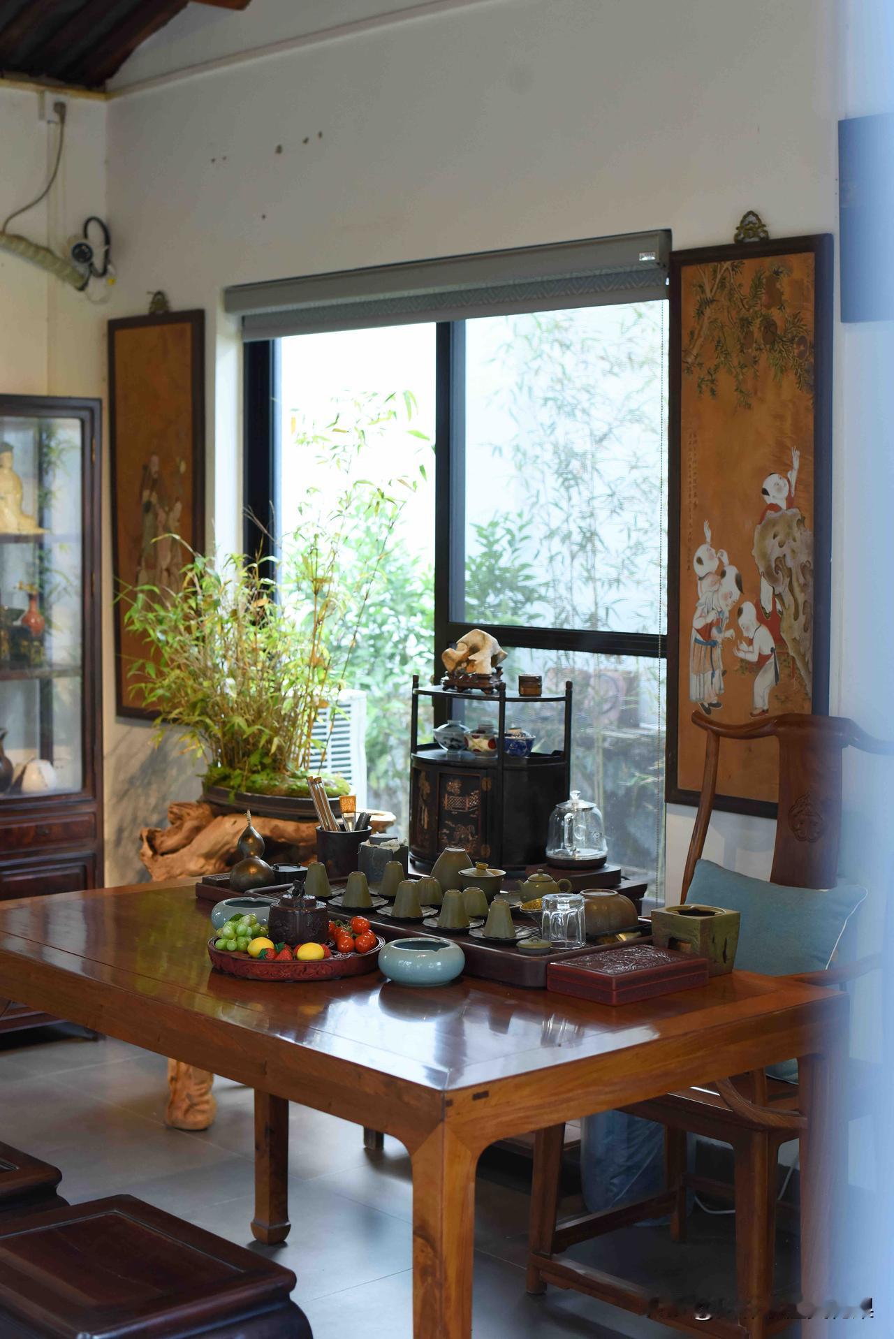 待在这种茶室,喝水都是香的! 一屋古意,满室清欢。 木梁承着岁月,案几藏着匠心,根雕桌、圈椅旁,青花盏映着闲光。 屏风描尽花鸟意,案头笑佛送安康,竹影穿窗,茶香绕梁。 每一件老物,都在时光里静静诉说,把中式的雅致与温柔,酿成了日常的诗意。