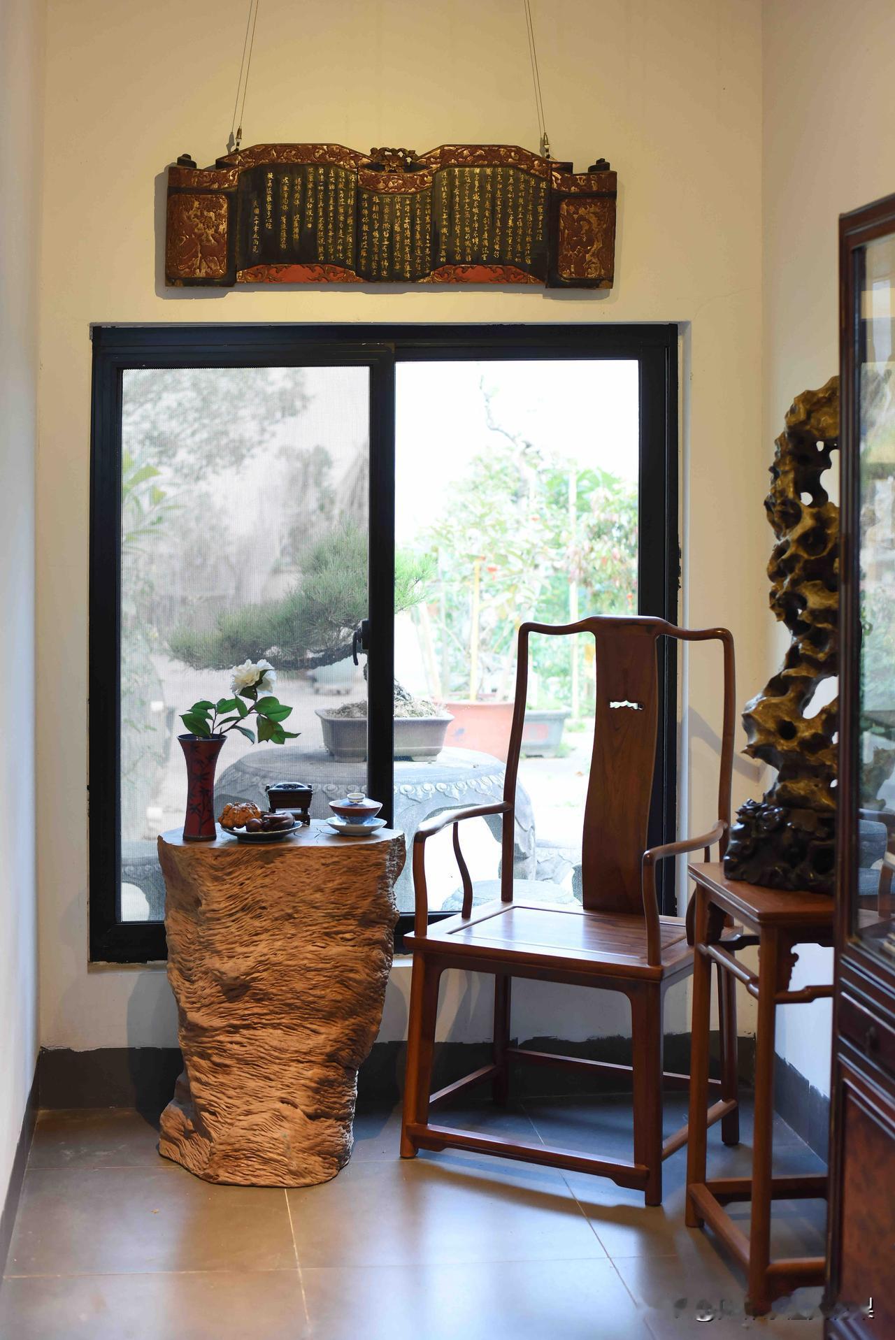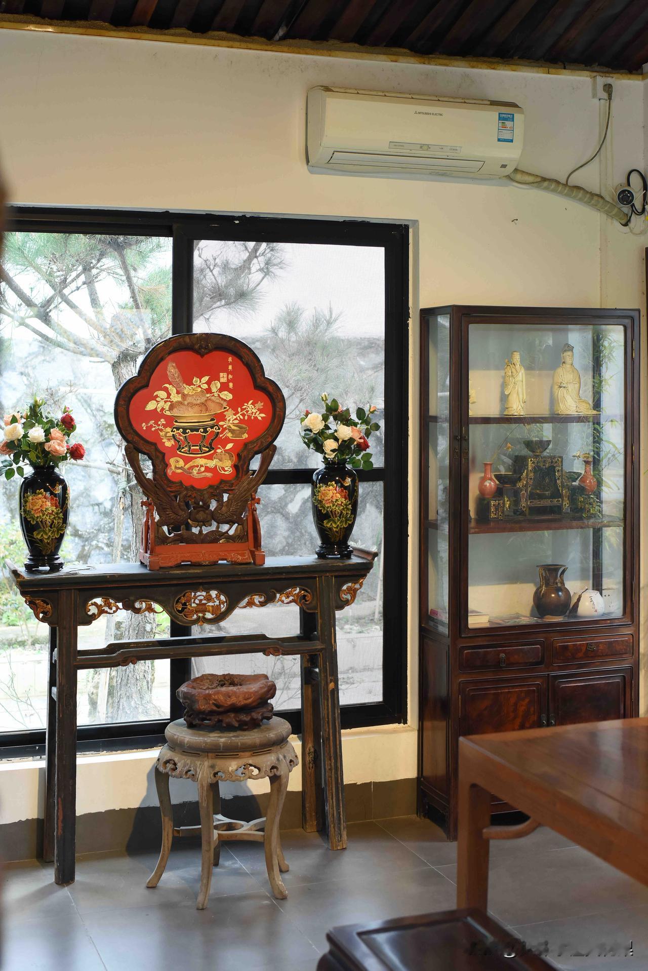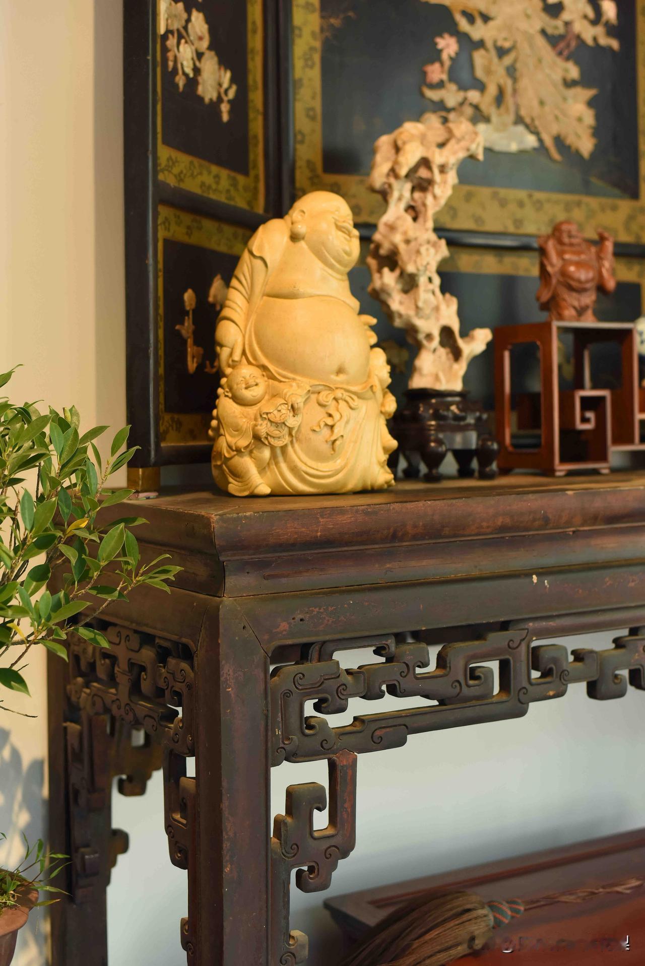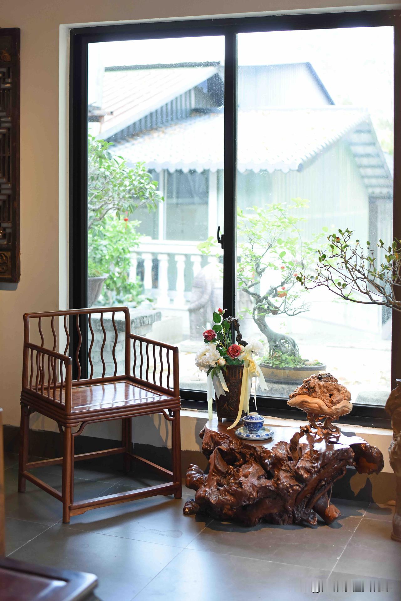待在这种茶室,喝水都是香的! 一屋古意,满室清欢。 木梁承着岁月,案几藏着匠心,根雕桌、圈椅旁,青花盏映着闲光。 屏风描尽花鸟意,案头笑佛送安康,竹影穿窗,茶香绕梁。 每一件老物,都在时光里静静诉说,把中式的雅致与温柔,酿成了日常的诗意。