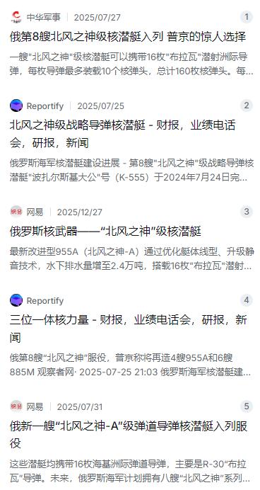 说句大实话,就算我们把10艘崭新的055万吨大驱,开到俄罗斯家门口,跟人家说换一艘“北风之神”核潜艇,俄罗斯人估计连眼皮都不抬。为啥?因为根本换不了。这两样东西,压根就不是一回事。 麻烦看官老爷们右上角点击一下“关注”,既方便您进行讨论和分享,又能给您带来不一样的参与感,感谢您的支持! 咱们先说说这055万吨大驱,作为中国海军水面舰艇的中坚力量,满载排水量超过1.3万吨,配备112个垂直发射单元,能发射防空、反舰、反潜和对陆攻击等多种导弹。它的有源相控阵雷达和综合作战系统,放眼全球都是一流水准,被称作“航母带刀侍卫”可不是白叫的。在常规水面作战领域,055确实够强够猛。 但这毕竟是水面上的东西,再厉害也属于常规作战范畴。 而俄罗斯的“北风之神”级战略核潜艇,那玩意儿是深海里游弋的幽灵,是莫斯科压箱底的战略底牌。这种水下巨兽水下排水量将近2.4万吨,每一艘都能搭载16枚“布拉瓦”潜射洲际导弹。这16枚导弹是什么概念?一枚“布拉瓦”可以携带6到10个分导式核弹头,也就是说,一艘“北风之神”的齐射,能把上百枚核弹头同时砸向一万公里之外的目标。更关键的是,这东西平时潜伏在深海,隐蔽性极强,就算俄罗斯本土被核打击荡平,它也能从水下发起毁灭性的报复反击。这就是“二次核打击能力”——核威慑链条里最硬核的那一环,是确保彼此都不敢轻举妄动的根本保证。 055再强,能做到这个吗?显然不能。 从战略价值上看,这两样东西压根不在同一个级别上。水面舰艇是看得见的拳头,而战略核潜艇是看不见的底牌,是那种不到万不得已绝不亮出来的终极武器。 再退一步讲,就算俄罗斯人脑子一热想换,也根本换不了。这可是涉及国家核心机密的顶级装备,静音技术、核反应堆设计、导弹发射系统,每一块都是俄罗斯几十年的心血结晶。军事评论员程硕曾评价,“北风之神”堪称苏联战略核潜艇设计经验的集大成者,其噪声水平甚至低于海洋背景噪声,水下探测难度极大。这么核心的技术,莫斯科怎么可能拿去跟别人交换?更别说还是用核威慑能力来换取几艘常规水面战舰,这种生意就算喝再多伏特加也想不出来。 有分析就明确提到,包括“北风之神”核潜艇、图-160战略轰炸机、萨尔马特洲际导弹在内的装备,都属于俄罗斯坚决不对外出售的“禁运清单”。 退一万步讲,就算咱们拿了“北风之神”,这生意也不划算。现代核潜艇就像一座水下移动的超级复杂系统,涉及核动力、声呐、导弹制导、深海材料等上百个尖端领域。就算弄回一艘,没有完整的技术体系支撑,连基本的维护保养都搞不定,更别说从它身上吃透技术了。况且中国海军的发展路子早就明确了——靠天靠地不如靠自己。从当年仿制苏联装备,到后来自主研发,咱们在尖端武器上从来不指望别人施舍。俄罗斯在核潜艇领域确实有深厚家底,俄媒也曾承认俄方在这方面优势明显。但咱们中国也不是原地踏步的。 在水面舰艇方面,从052C到052D再到055,中国海军的“盾舰”队伍已经壮大到54艘的规模,其中055大驱的建造还在持续推进。 在水下领域,中国已经在093型和094型核潜艇的基础上不断改进,新一代095型攻击核潜艇和096型战略核潜艇的研发也在稳步推进中。有报道指出,新一代095型核潜艇在静音和下潜深度方面已经有显著突破,排水量超过4000吨。 说白了,055驱逐舰和“北风之神”核潜艇,一个是水面常规作战的尖兵,一个是水下核威慑的王牌,两样东西各司其职,根本没法直接比较。俄罗斯人要是真把“北风之神”拿来换055,那才叫脑子进水。而咱们中国人从来不信什么“拿来主义”,路子早就选定了——自己的核潜艇,自己造。这才是真正的大国底气。
