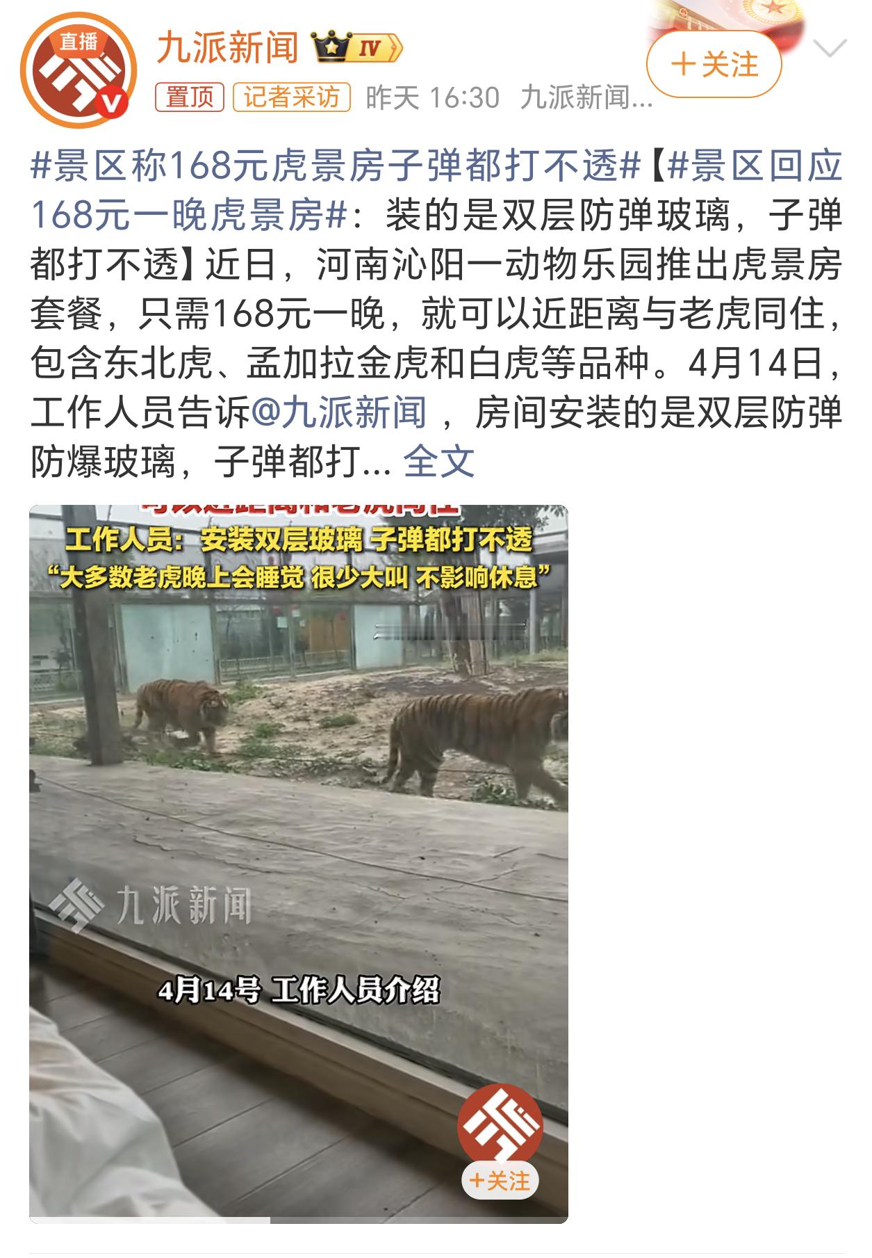 景区回应168元一晚虎景房不是“湖景房”,而是“虎景房”。早上拉开窗帘的时候要做好心理准备,如果一只老虎龇牙咧嘴盯着你,也挺吓人的吧,哈哈。