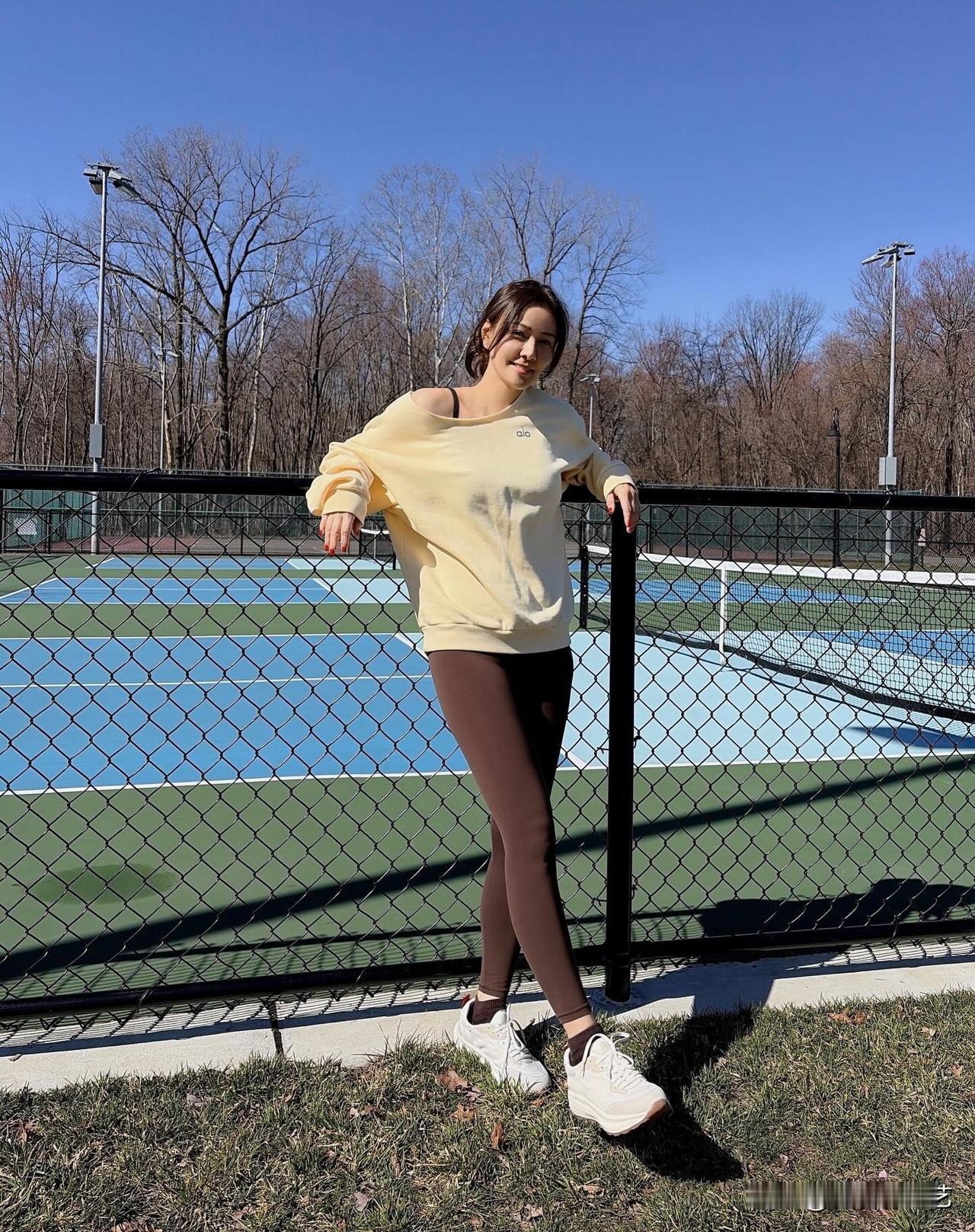 近日,演员权相佑的妻子孙泰英在Instagram上传了多张照片,并配文“温暖的春日,穿着春季运动鞋在附近散步。” 照片中,孙泰英以蓝天和网球场为背景,摆出各种姿势,展现了她轻松的日常生活。宽松上衣搭紧身裤的造型舒适自在,裤装勾勒出纤细匀称的双腿,自然的身材曲线在随性穿搭里更显利落,行走间裙摆轻晃,仍透着前韩国小姐独有的优雅气场,举手投足都让人忍不住赞叹这份时光沉淀的从容。