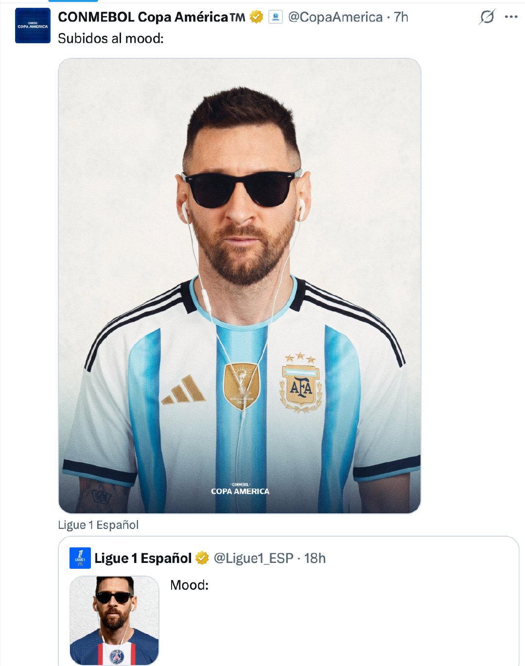 【】美洲杯官推转发法甲西语官推:“心情好”梅西