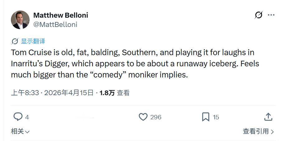 看完片段的媒体们表示,这像是一部“嗑嗨了的科恩兄弟电影”要上演了,不光是因为片中美国总统扮演者是约翰·古德曼,克鲁斯自己也化身一名年老、发福、秃顶、暴躁的南方亿万富豪,那头白发和满脸皱纹让人差点认不出是他演的戏。还有人提到像《奇爱博士》式的癫狂黑色讽刺,因为这位亿万CEO引发甲烷泄漏灾难,威胁数百万人生命,然后必须想办法收拾自己造成的烂摊。
