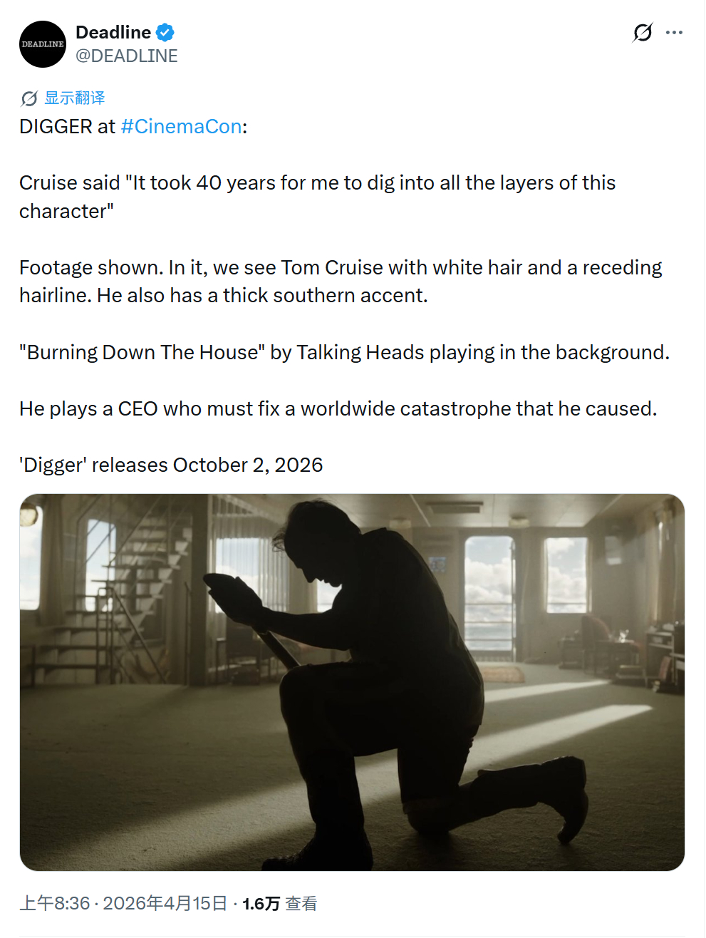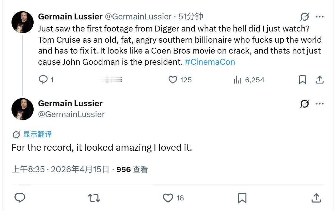 TNABO 汤姆·克鲁斯冲奖新片《掘世者》(Digger)在CinemaCon推介会上放送特别片段,亿万富翁整出危机再现“灾难级黑色喜剧”
