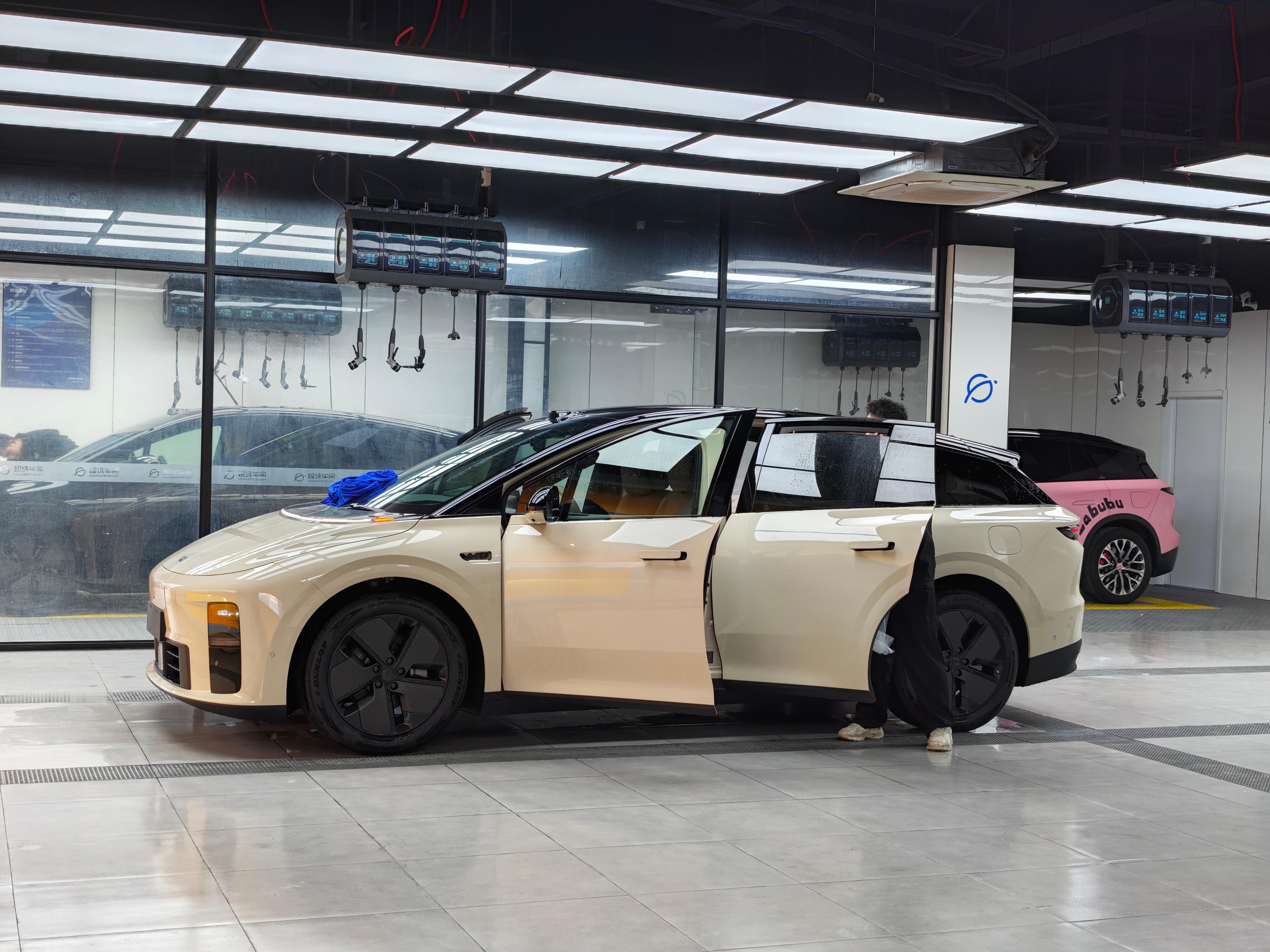 今天中午继续来超级车间蹭减脂餐,理想i6这个云朵黄实车蛮好看的,车间来了好几台,另一个选装小灰鲨配色感觉没人选。 嘉兴·超级车间·汽车贴膜(嘉兴店)