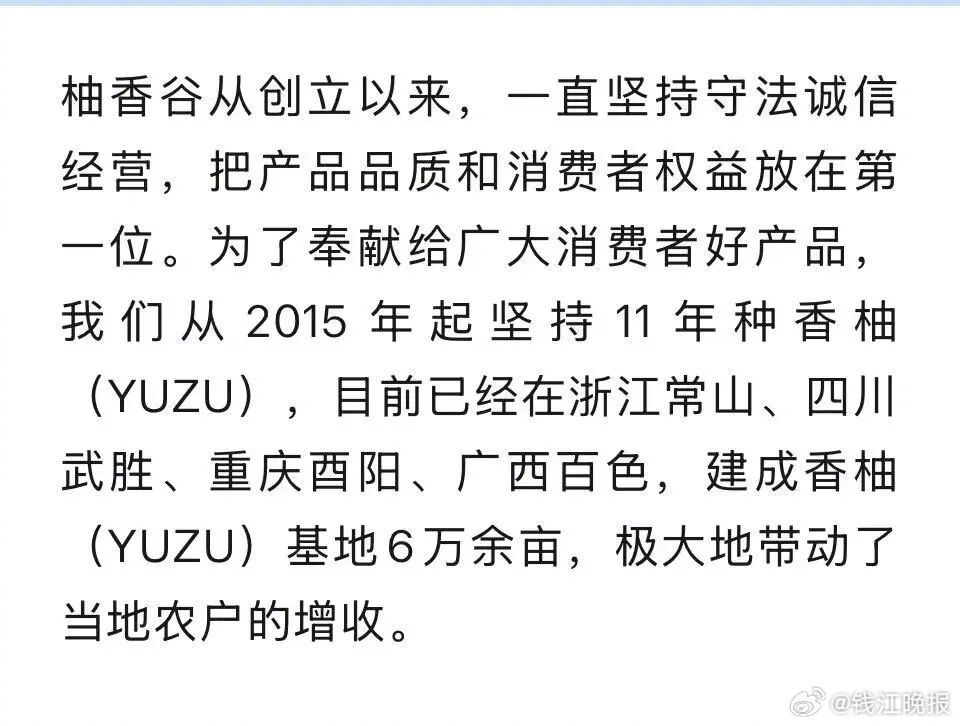 宋柚汁通过其官方号发声表示,宋柚汁是复合果汁饮料,果汁总含量≥10%,符合GB/T 31121-2014《果蔬汁类及其饮料》国家标准,请大家放心饮用。并对网传“医生合作推广降糖功效”以及宣传修改等做了说明↓#年销10亿的宋柚汁柚含量不到3%# (潮新闻 记者 王静)