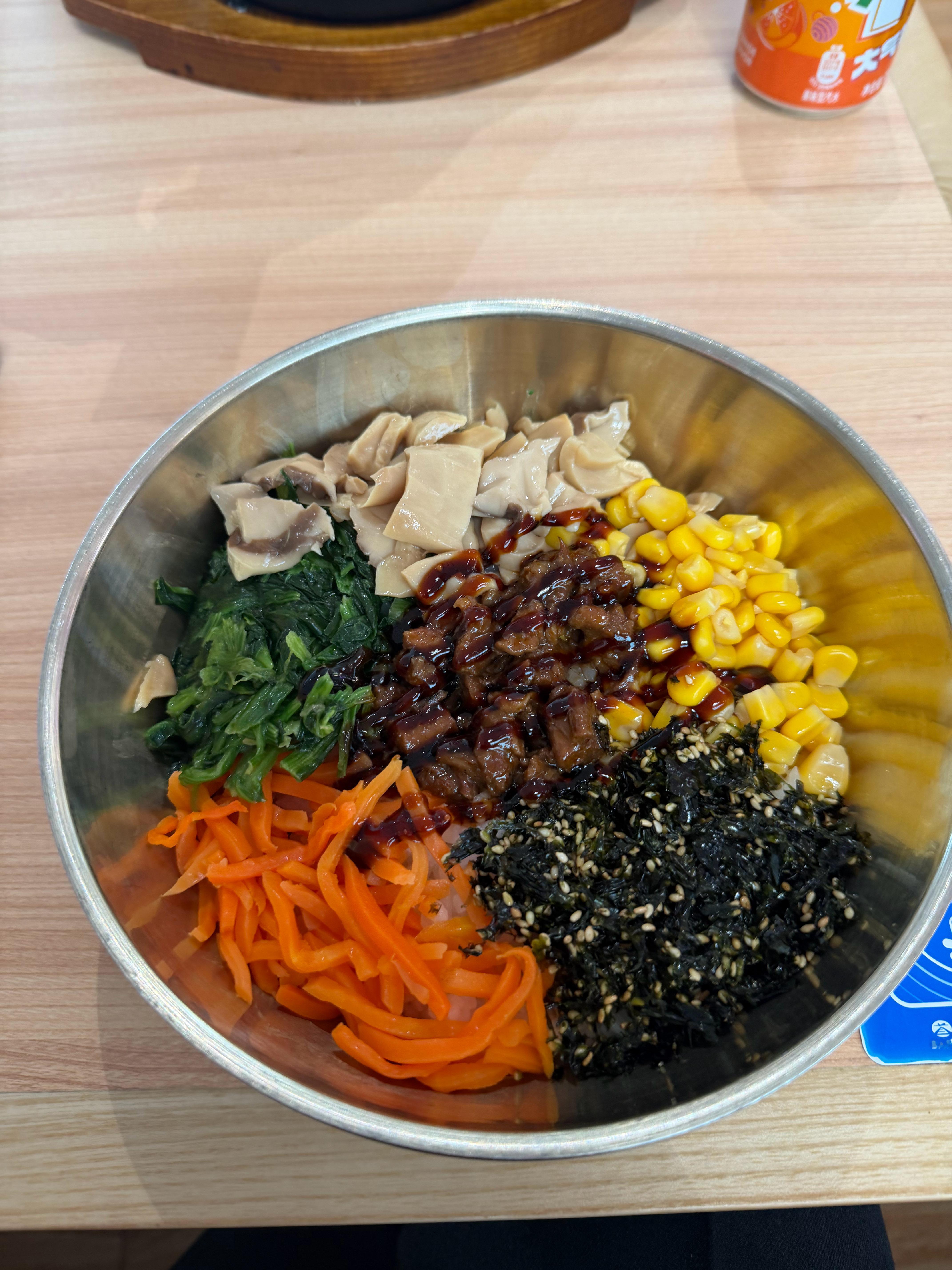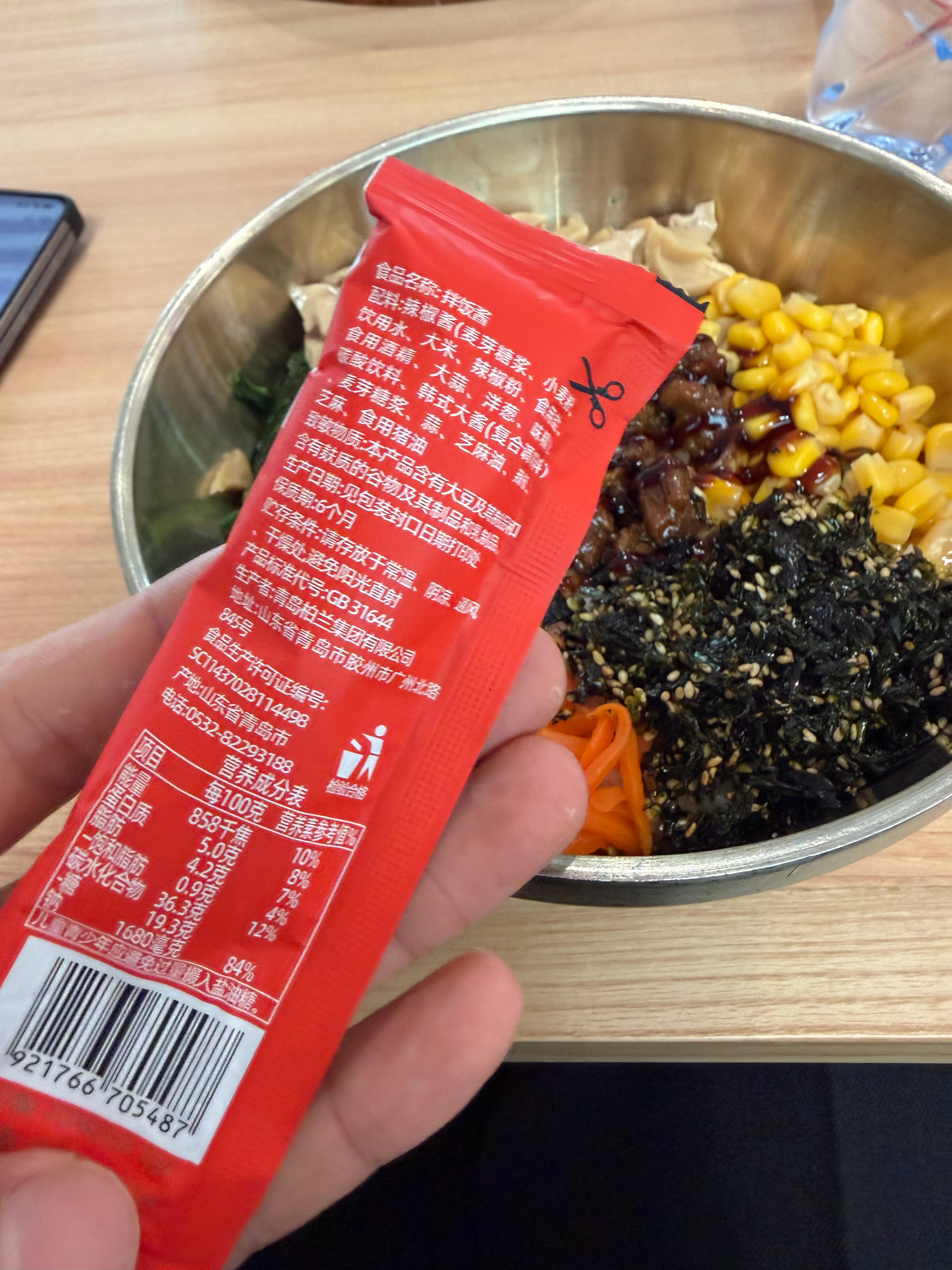 中午机场吃石锅拌饭这个拌饭酱,钠含量太高了,直接扔掉简单吃点,控制热量