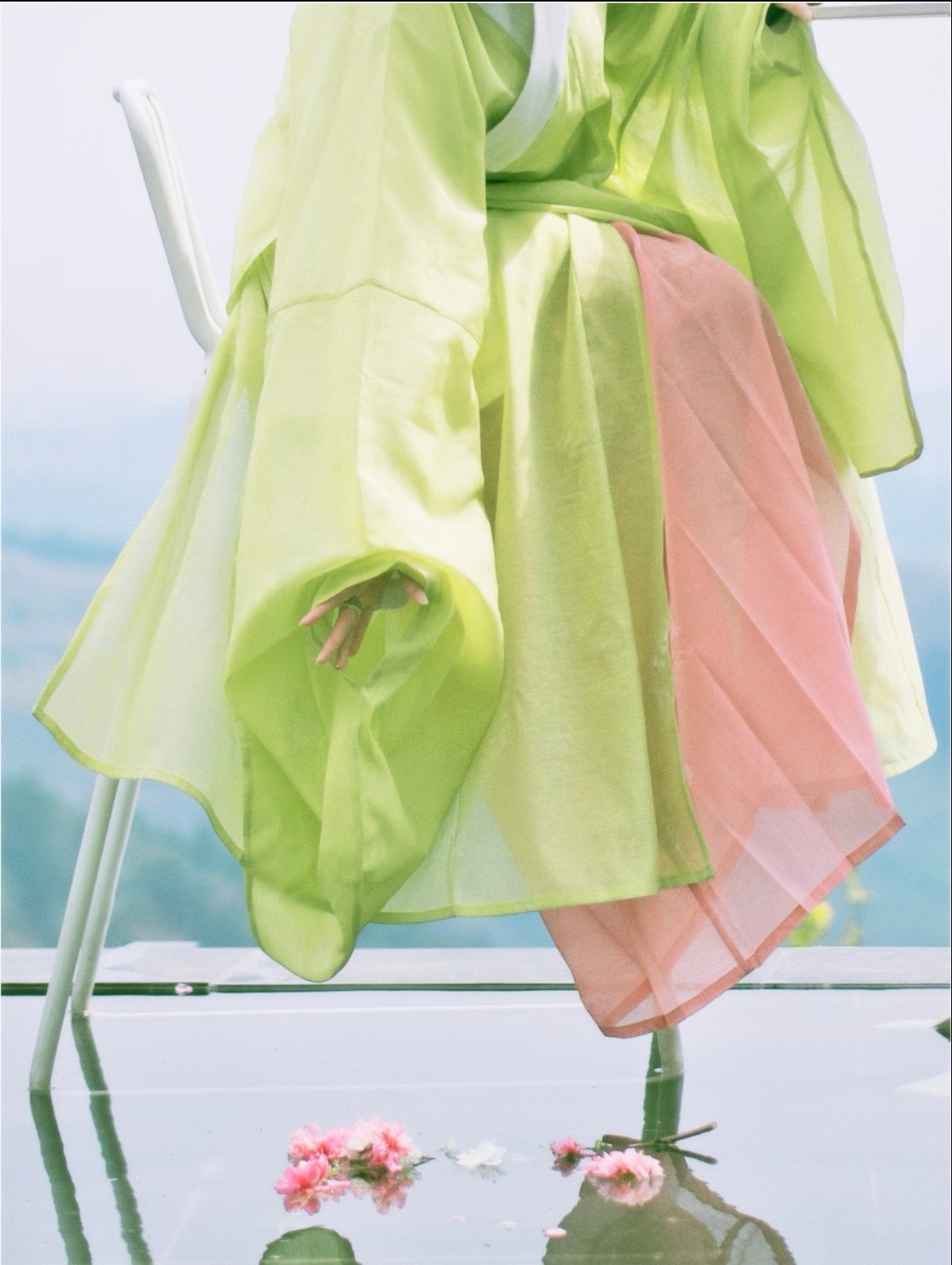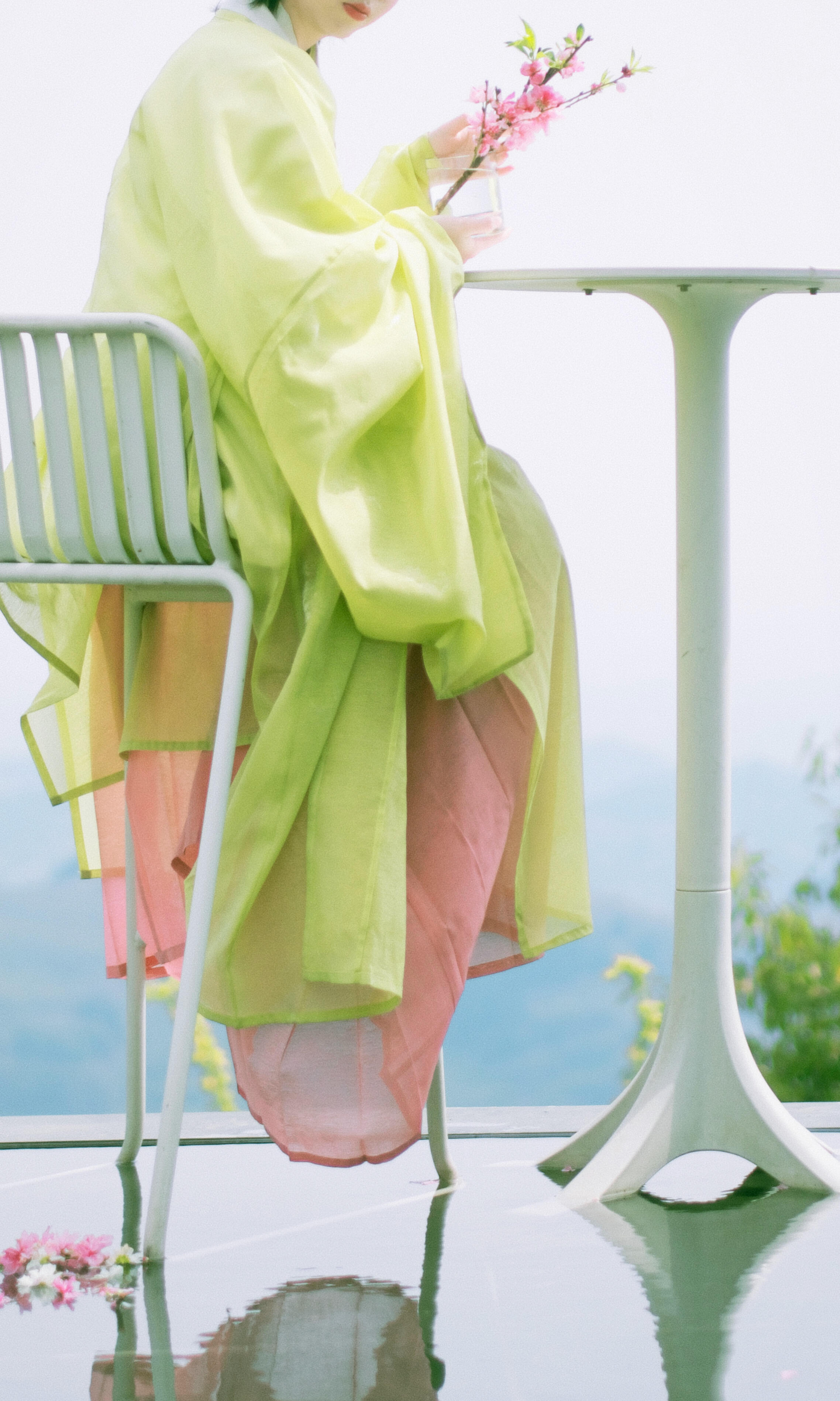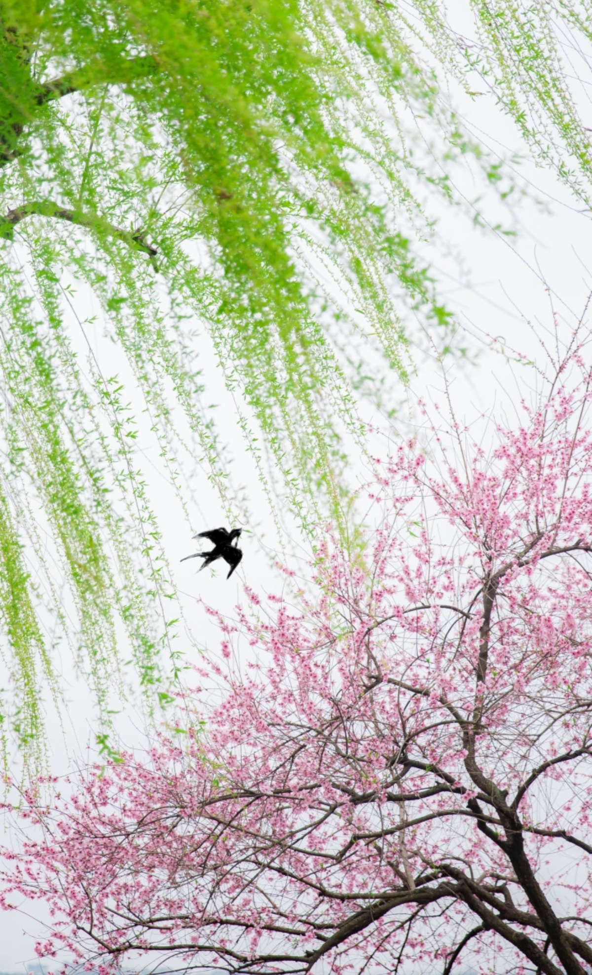 桃红柳绿,春天的气息,这小姐姐汉服配饰好漂亮。明制明制汉服
