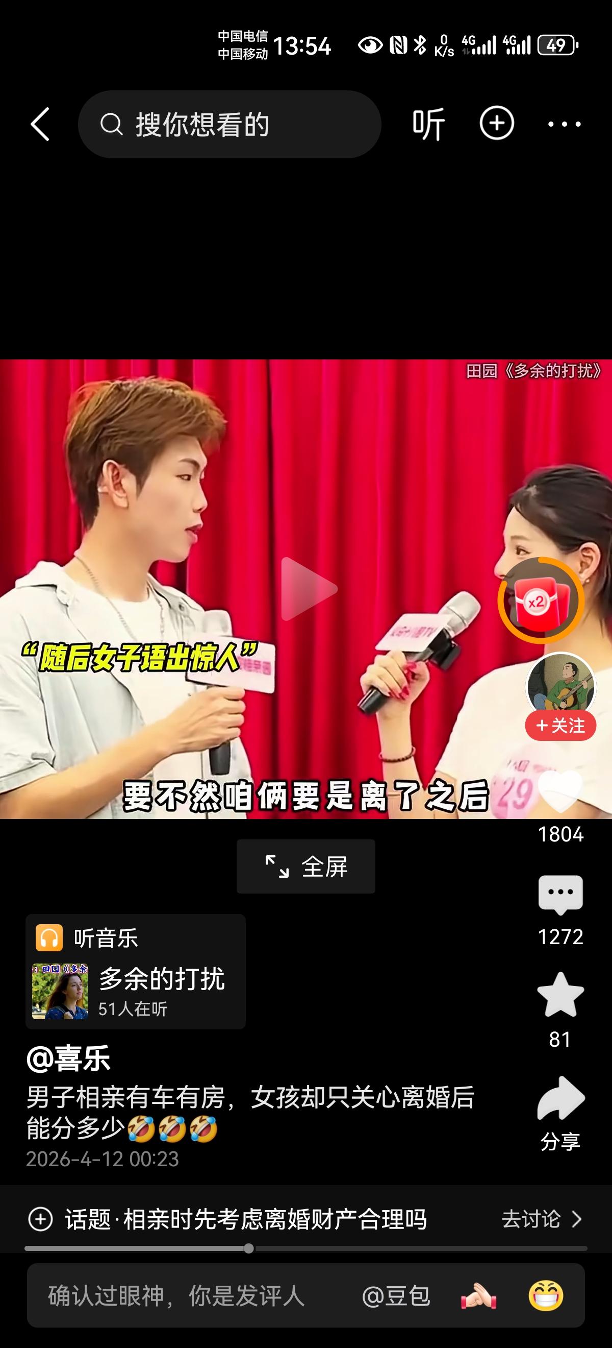 眼光如此长远的女人常见吗? 相亲现场,女方问男方, “离婚后我岂不是啥也得不到!” 还没结婚就谈离婚,这种女人多奇葩? 你有车吗? 你有房吗? 你有存款吗? 全款买的还是贷款买的? 房子能加我的名字吗? 要是不加, 离婚后我岂不是啥也得不到! 这女人的眼光看得真长远, 很可惜,缘分未到!