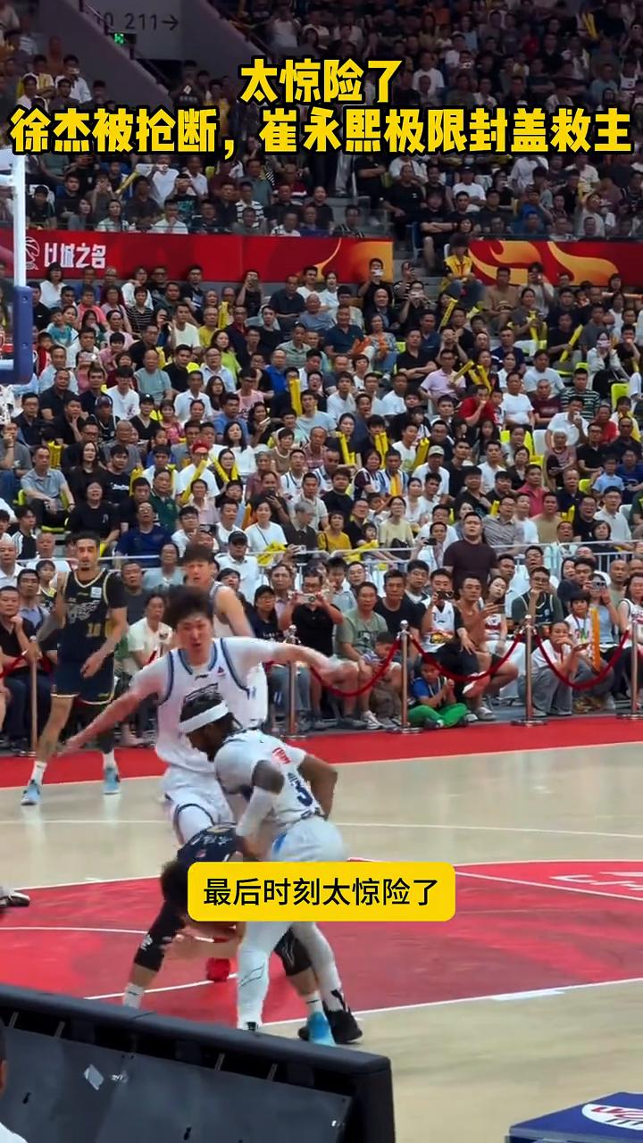 太惊险了!徐杰被抢断,崔永熙极限封盖救主。 注意看,最后时刻太惊险了。徐杰持球推进,被对手直接抢断。眼看反击就要打成,还好崔永熙及时回追,送上一记关键封盖,扑灭对方反绝杀。希望这一攻一防,看的人心脏都要跳出来,太刺激了。