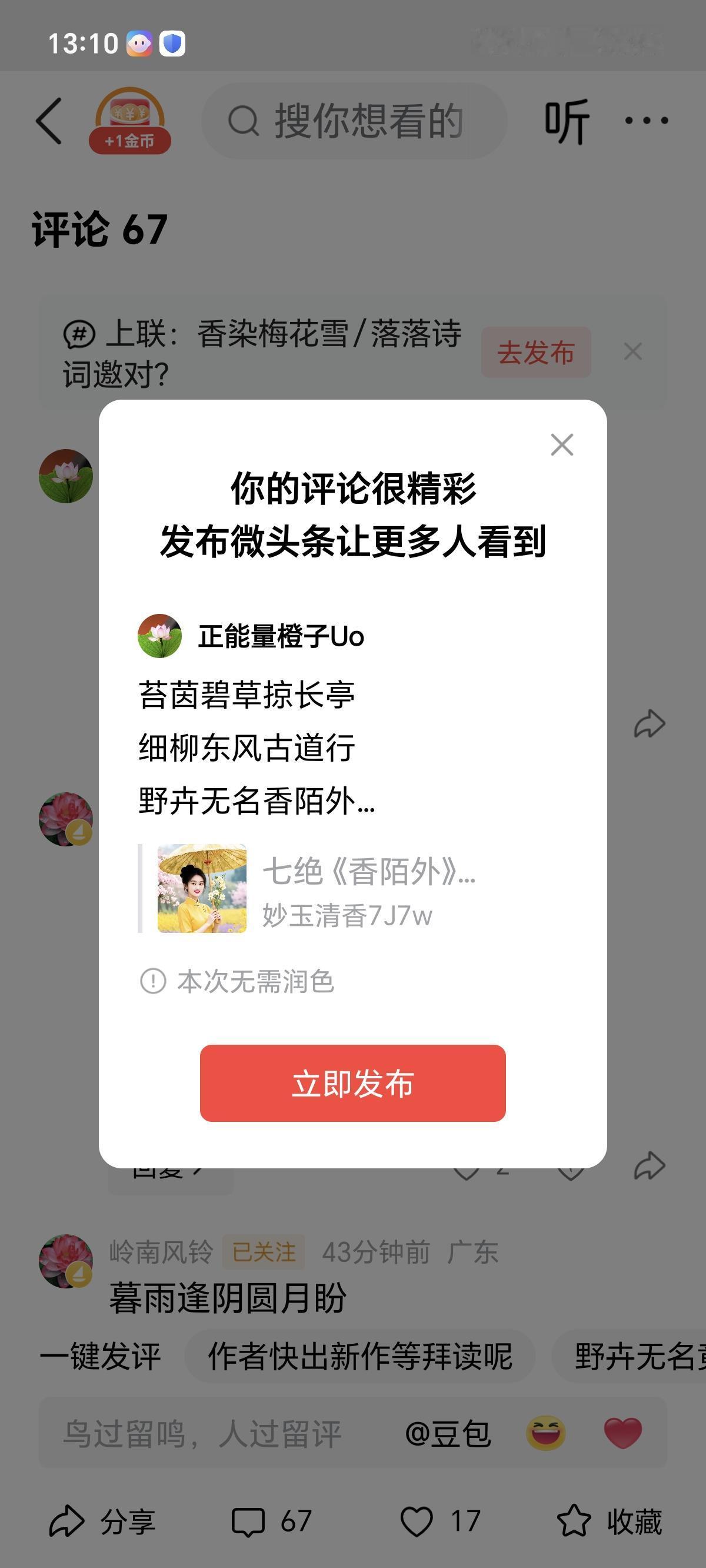 苔茵碧草掠长亭 细柳东风古道行 野卉无名香陌外 老师头条有水平。