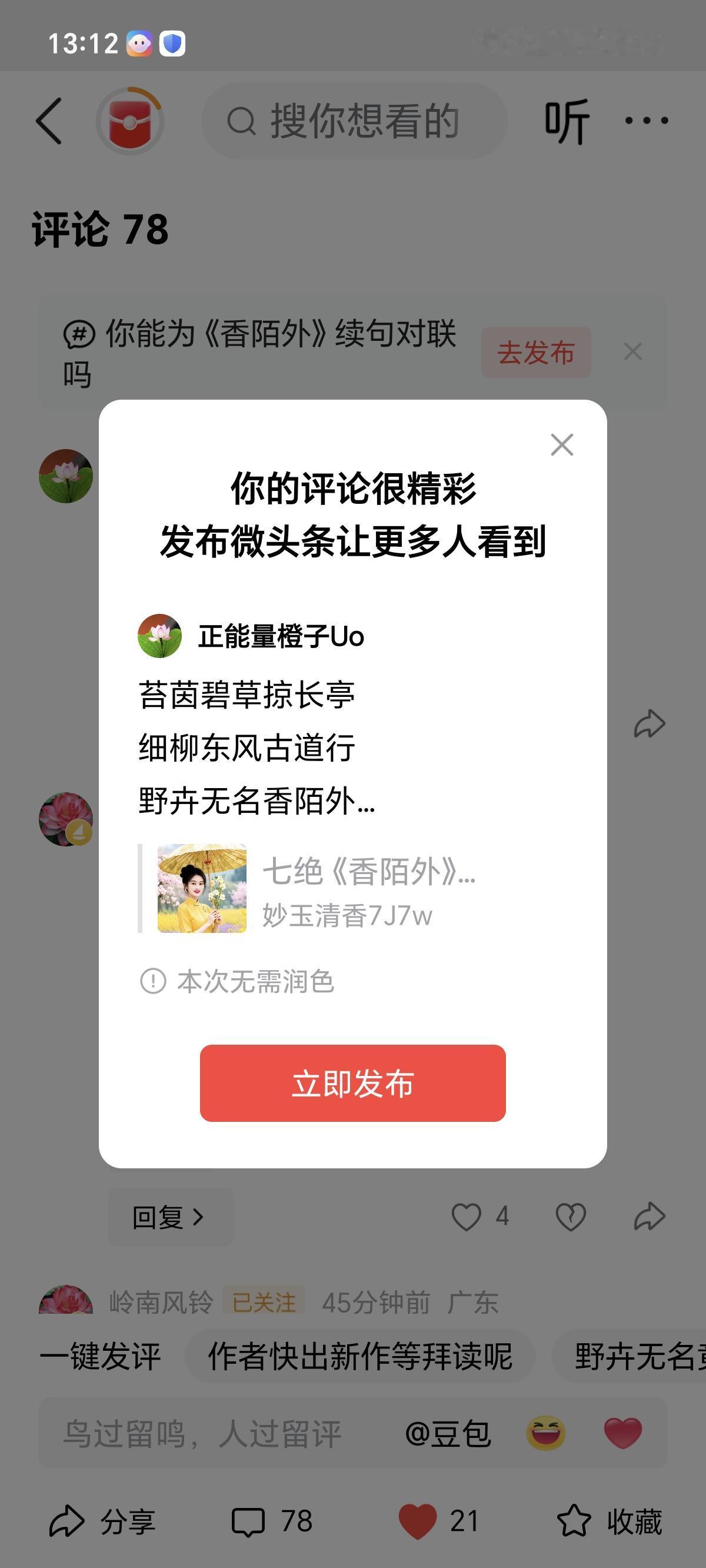苔茵碧草掠长亭 细柳东风古道行 野卉无名香陌外 人生爱拼才会赢。