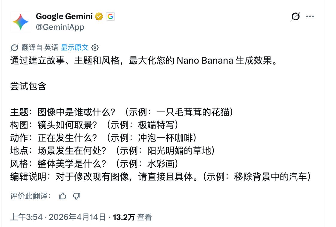 谷歌的新手向教程,用于 AI 图片生成(注:你可以用这个模板搓个 skills,在你需要图像生成提示词的时候,通过这个 skills 来出提示词)