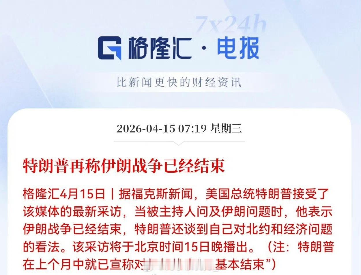 特朗普再称伊朗战争已经结束特朗普称对伊朗战争结束