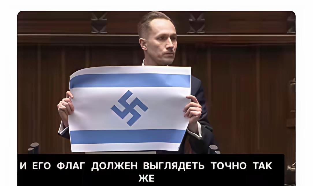 以色列的暴行已经引起了全世界的不满。以色列在对加沙对伊朗的袭击中造成了大大平民的伤亡。这时候,波兰议员康拉德已经明确的表示,以色列正在屠杀着全人类,似乎这一切都与以色列的暴行有一定的关系,最终这位议员拿着一面以色列的国旗,已经将其国旗进行修改,看上去似乎更像变异了以色列的国旗,但实际上它描述的却是纳粹的暴行,寓意之指就是以色列在所有军事行动中,几乎与曾经的纳粹德国性质一样,对人类实施惨绝的屠杀,这时候议员已经很明确地指出,在波兰的奥维斯辛纳粹集中营,反映的德国的暴行,如今以色列的袭击与纳粹没有任何的区别,看来这场国际性的评判已经引起了欧洲的重视,并为此人们看到了这场战争的残酷性。以色列并没有维护人类,反而在实施更残暴行为,与德国纳粹有着性质不可分别的关系,看来全世界已经开始对以色列不满,但是以色列在美国的庇护下仍然实施惨无人道的军事打击,最终引发了全世界的不满。