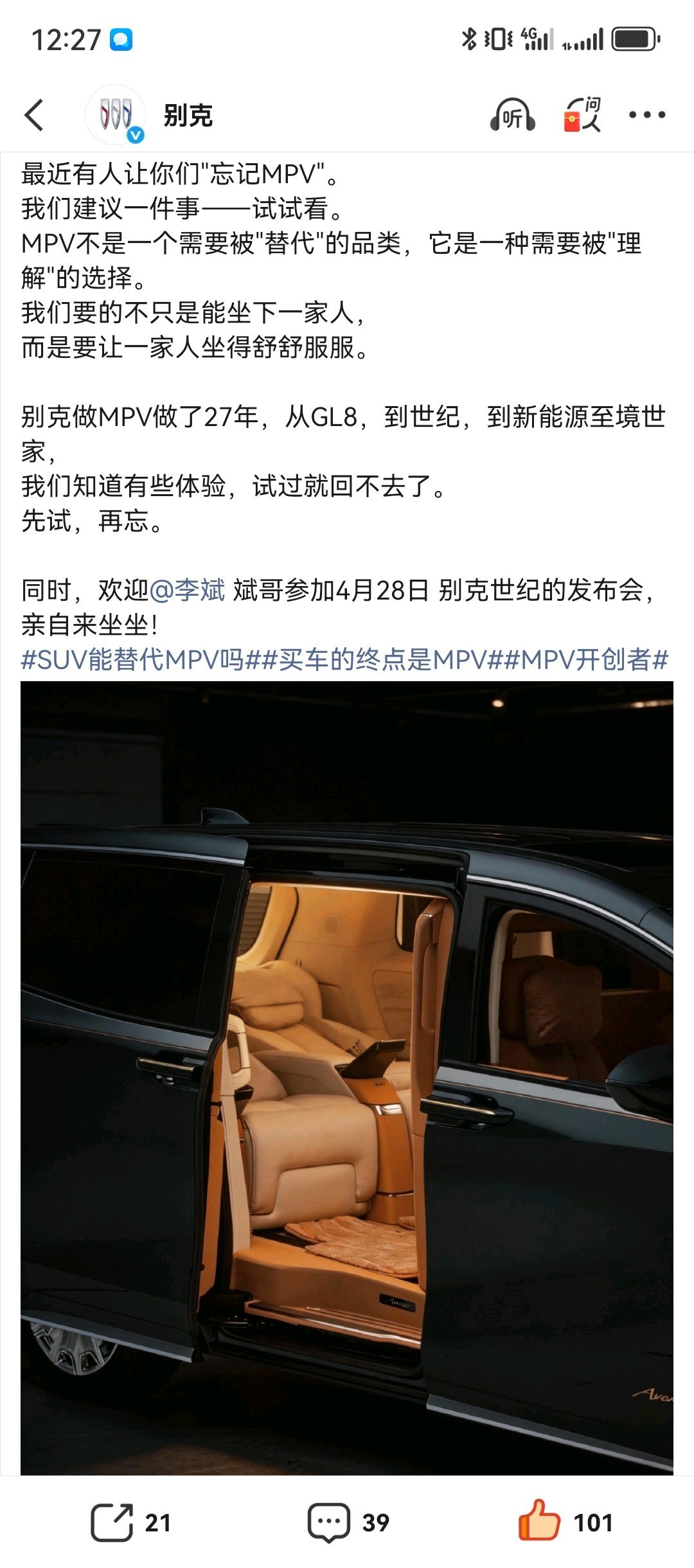 到时候,忘不忘得了,这个问题就简单了,请就带上你最挑剔的家人,去试,去坐,去感受。然后,你可以看看,究竟是谁,能让他们笑得更开心,答案一目了然SUV能替代MPV吗 别克回应李斌