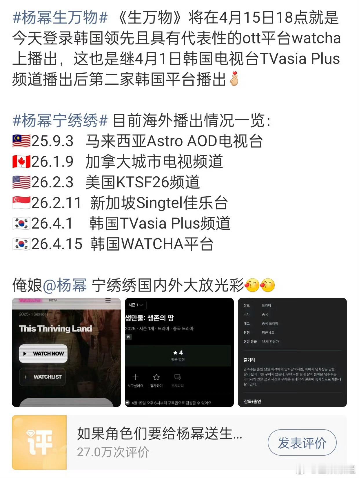 生万物海外开播宁绣绣走出国门从马来西亚到韩国,从电视到WATCHA——宁绣绣的针线,绣出了国际版图!