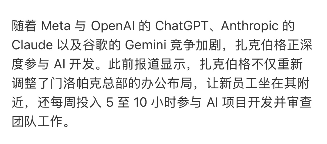扎克伯格把工位搬到AI团队整天编程这是什么策略?感觉新员工压力山大啊