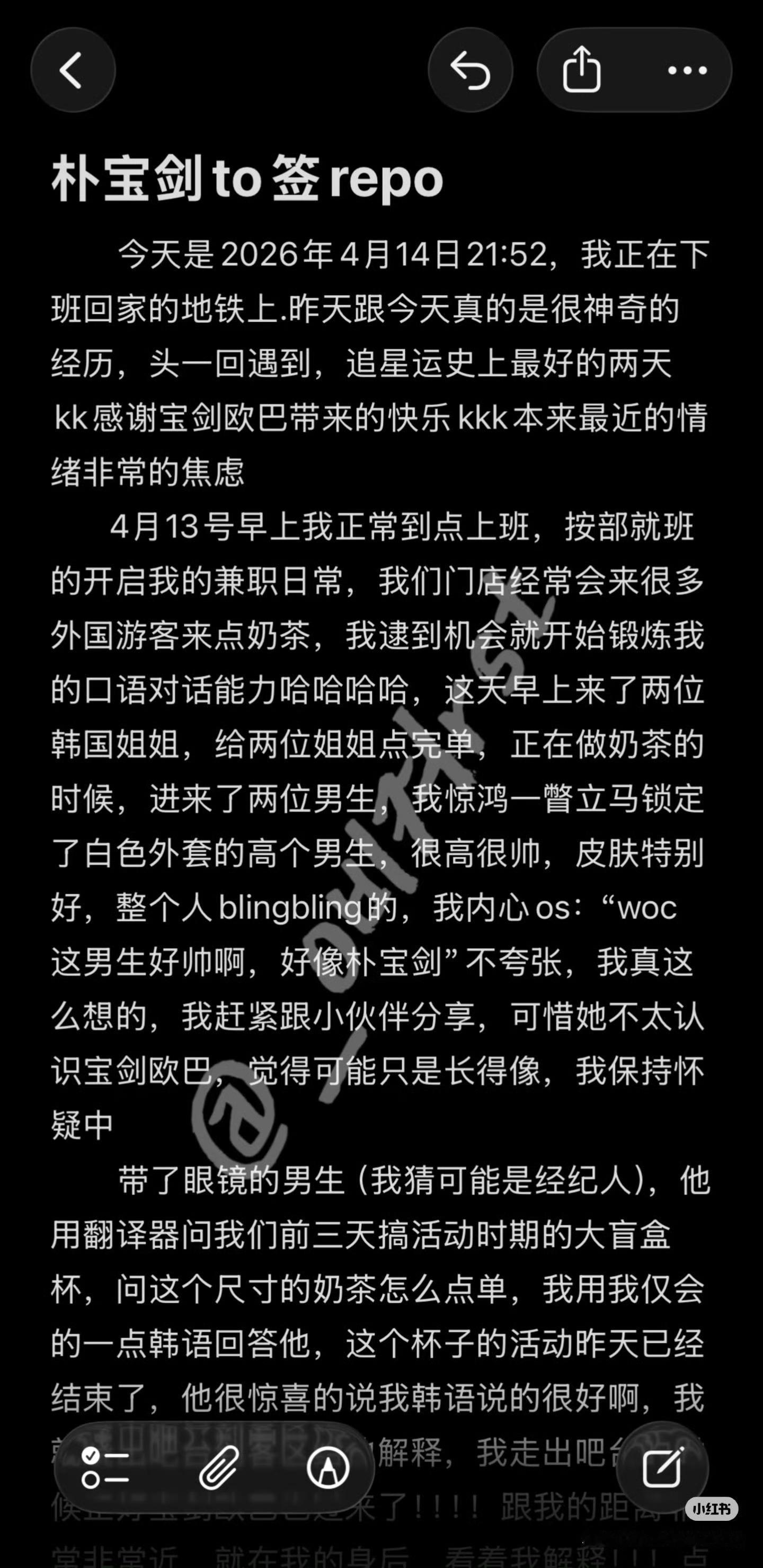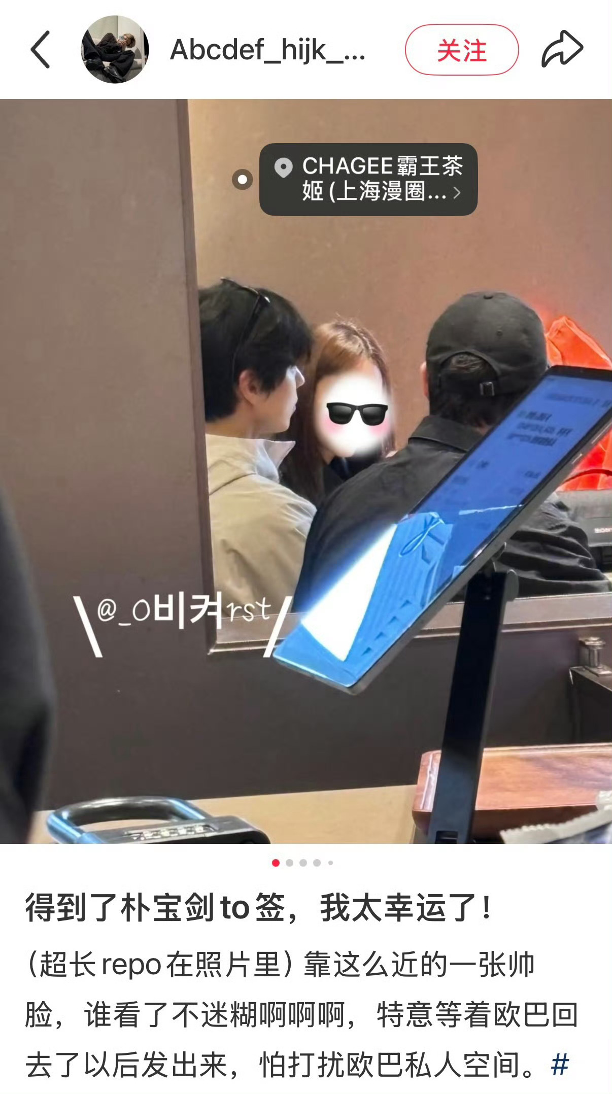 朴宝剑给奶茶店上班网友TO签欧巴你人真的好好竟然还是主动给签名光看文字就觉得好幸
