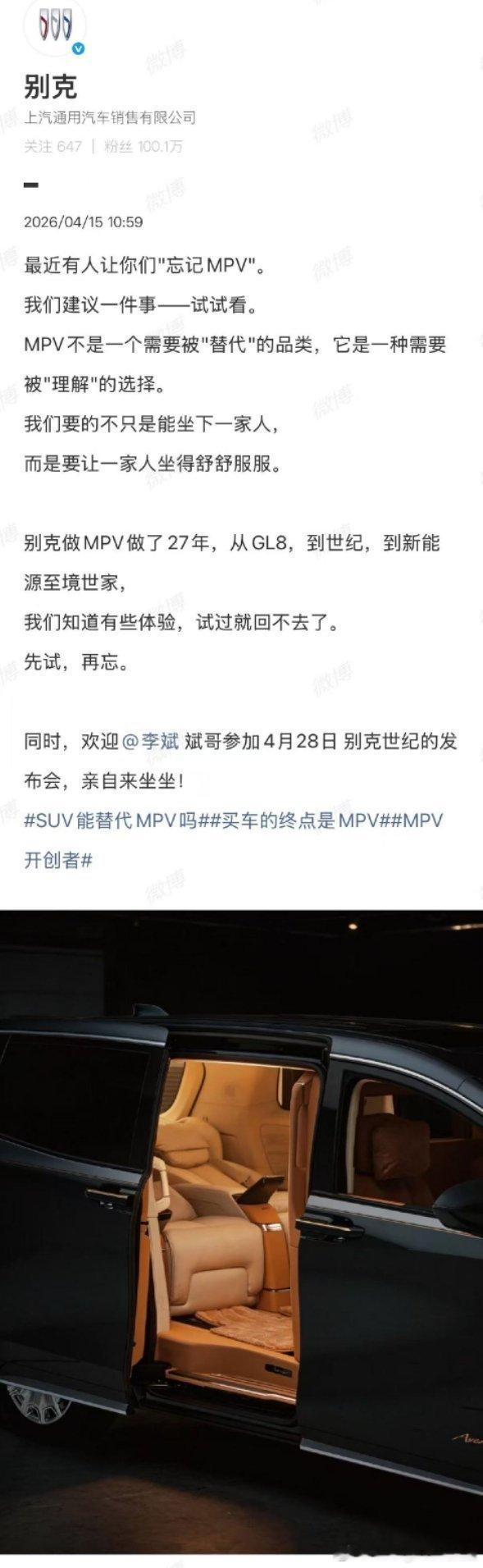 别克回应李斌SUV能替代MPV吗 不要以为这个话题没有意义,李斌也不是胡说八道,其实是有价值的话题。