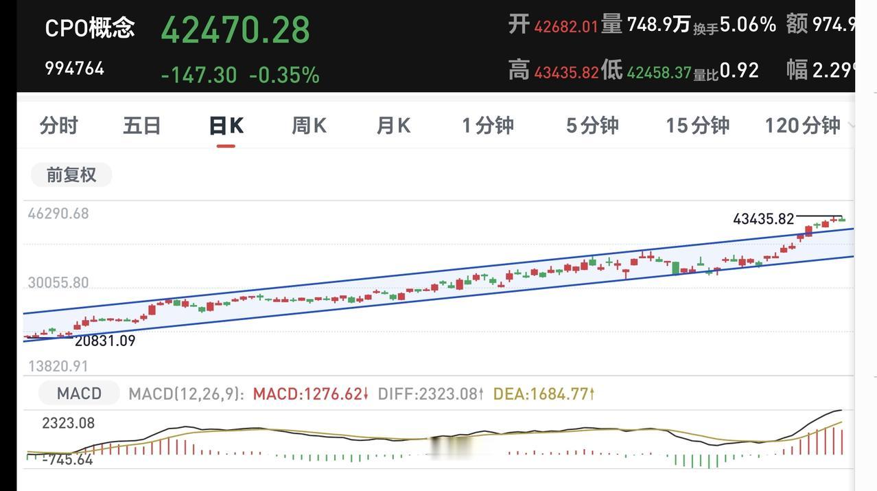基金:市场虽然震荡调整,但没有理由不看多做多 日本和韩国市场今天上涨,日本上涨了0.28%,韩国上涨了2.30%,都是冲高回落的走势。 香港市场今天也是上涨,恒生指数上涨了0.42%,国企指数上涨了0.51%,恒生科技指数上涨了1.21%,也都是冲高回落的走势。 整个股票市场,上涨2217家,下跌3143家,两市累计成交19759亿,相比于上一个交易日同期放量了293亿,主力资金净流出606亿。 主力资金净流入最多的三个板块是:医药生物板块,电网设备板块,创新药板块,主力资金净流出最多的三个板块是:高端制造板块,大科技板块,电子板块。 我们来看一下下面的截图5,这是上证指数日K线图,昨天上涨突破了日线级别下跌通道的上轨线,今天是在这个下跌通道的上方震荡,昨天上涨突破日线级别下跌通道的上轨线,说明日线级别的下跌趋势有可能已经被改变,如果明天还没有跌回到原来的下跌通道内,就说明这个突破是有效突破,在有效突破的情况之下,我们没有理由不看多做多。 看下面的截图6,这是上证指数周K线图,前段时间下跌跌破了周线级别上涨通道的下轨线,昨天的上涨又回到了这个上涨通道内,今天是继续在这个上涨通道内震荡,在重新跌破这个上涨通道下轨线之前,上证指数周线级别都处于上涨趋势中,在重新跌破这个上涨通道下轨线之前,都需要积极的看多做多。 整个市场上涨幅度最大的三个板块是:创新药板块,海外医药板块,医药板块,下跌幅度最大的三个板块是:锂矿板块,稀土永磁板块,储能板块。 持有基金现在盘中估值上涨了1974元,盈利金额最大的三个板块是:创新药板块,先进制造板块,白酒板块,亏损金额最大的三个板块是:创业板指,5G板块,证券板块。 Cpo板块今天小跌,这个板块前段时间上涨突破了日线级别上涨通道的上轨线,进入了加速上涨的走势,今天虽然是下跌,但还是保持在上涨通道的上方,还是在加速上涨的过程当中,持有的人可以继续持有,但不建议追涨进场。 CPO板块周线级别也处于加速上涨过程中,只要是继续保持在上涨通道的上方,就可以继续持有,但这样的位置是看多不做多,也就是说,持有的人可以继续持有,不建议追涨进场。 人工智能板块昨天上涨到了日线级别下跌通道的上轨线上,今天盘中突破了这条上轨线,但现在又回落到了这条上轨线上,并没有形成突破,更没有形成有效突破,短线持有的人继续注意风险。 人工智能板块周线级别处于上涨通道中,今天盘中上涨到了这个下跌通道上轨线附近,然后进行了回落,现在还是处于周线级别下跌趋势中,长线持有的人继续注意风险。 光伏板块日线级别处于下跌通道中,今天的下跌还是在这个下跌通道中的震荡,这个板块的日线级别是处于下跌趋势中,短线持有的人继续注意风险。 光伏板块周线级别处于上涨趋势破位中,连续两周的上涨并没有能够重新回到原来的上涨通道内,连续两周的上涨并没有改变这个板块周线级别上涨趋势被改变的状况,长线持有的人继续注意风险。 市场现在还是小幅度波动当中,并没有跌破五天线,连五天线都没有跌破的波动,就没有任何理由慌张,连五天线都没有跌破的波动,就没有任何理由说反转已经失败,今天的调整是一个很正常的震荡,没有看出市场任何走坏的迹象。 你觉得现在的盘面有没有风险?你觉得现在应不应该看多做多? 今天究竟应该怎么办?我会在评论区留言。 大家帮忙评论点赞,转发和分享,谢谢大家的支持。