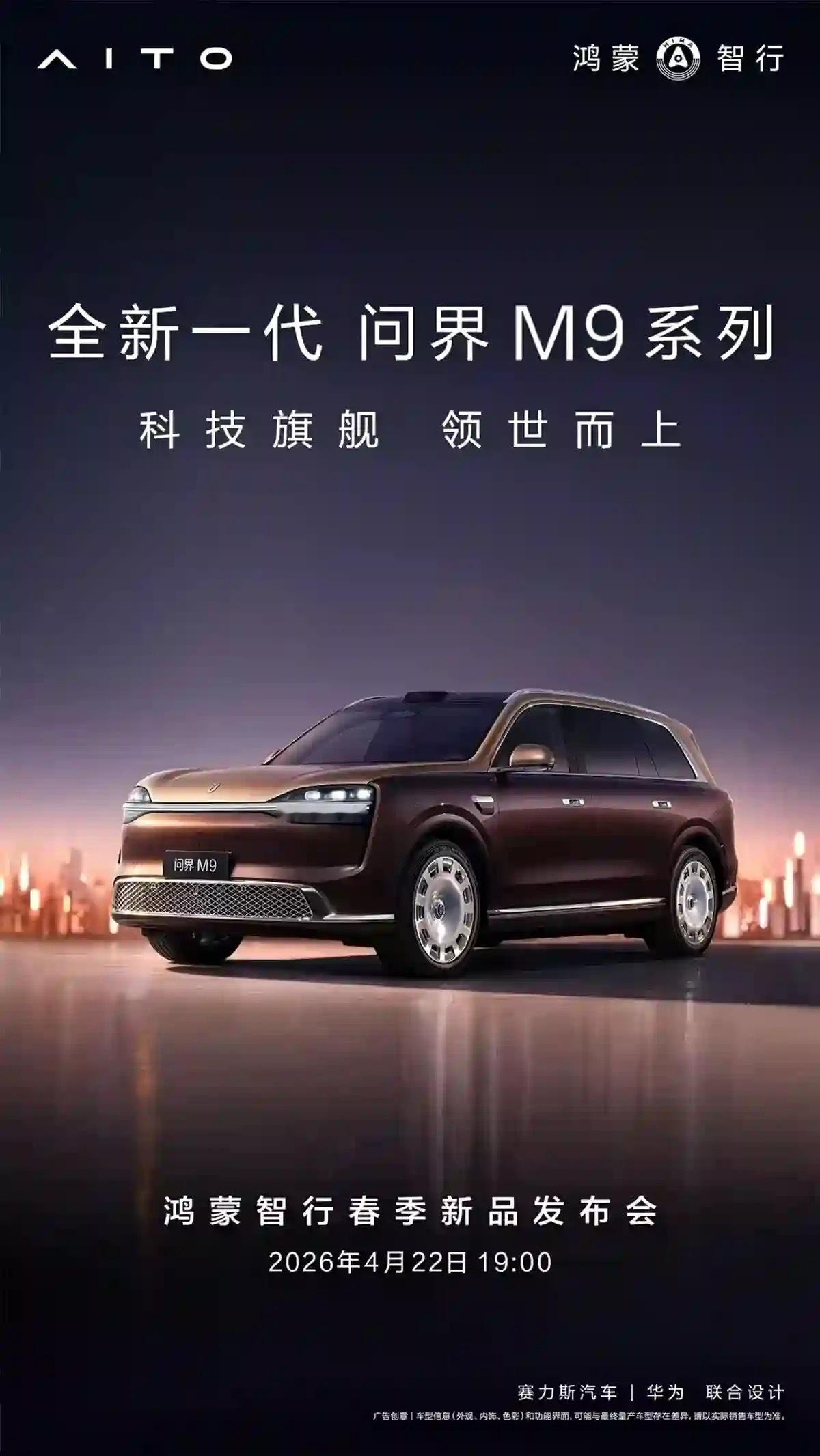 鸿蒙智行春季新品发布会来了,新M9、Z7/Z7T、M6、V9都在一周后4月22日发布,____、____、____、____四个对手会有点慌?尚界Z7尚界Z7T问界M6