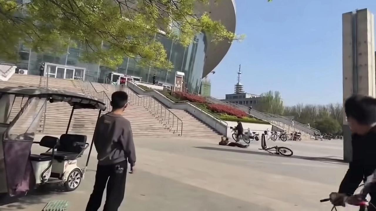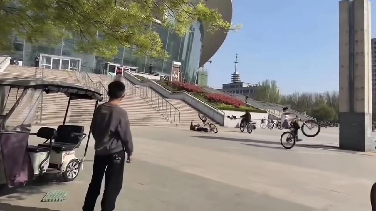 4月5日山东某地,几个未成年人骑自行车从台阶上一跃而下。其中一个小孩失去对车子的控制,导致身体后仰重重摔下头部着地,瞬间不省人事了。 我家附近有个天桥,经常也有熊孩子逞能,从桥上沿着台阶骑车窜下,非常惊险,自己容易受伤不说,对行人也是一种威胁。一旦出事,够家长后悔的。 现在生活条件好了,小孩想要自行车,家长二话不说就买,却很少考虑安全问题。未满12岁不允许骑自行车,这是交通法规定的,这娃不知道今年多大。