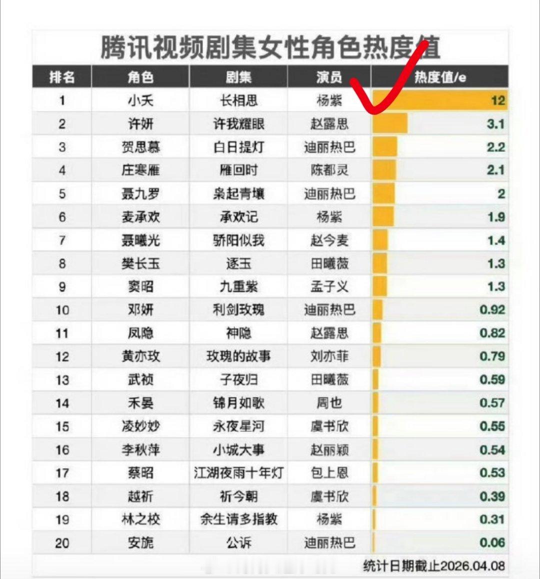 🐧腾讯女性角色热度,杨紫小夭是改版前第一,迪丽热巴是改版后第一,是这样吧?