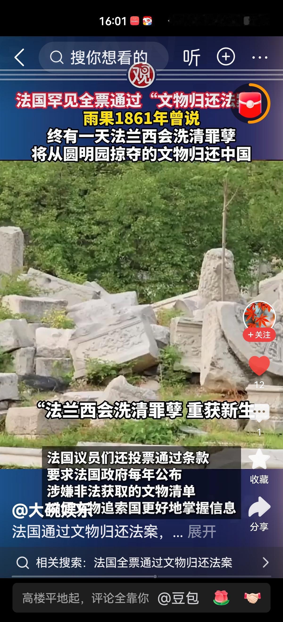 法国终于要归还曾经掠夺的他国文物了,那么其他国家是不是也该效法。想当年,八国联军在中国掠夺了不少价值连城的文物,如今是该讨还的时候了。 尽管马克龙在外交上就像一条变色龙,但在这件事儿上的确带了一个好头儿。对于那些装sunzi的国家,中国也不要任其装傻充愣,该拿出点措施逼他们归还。