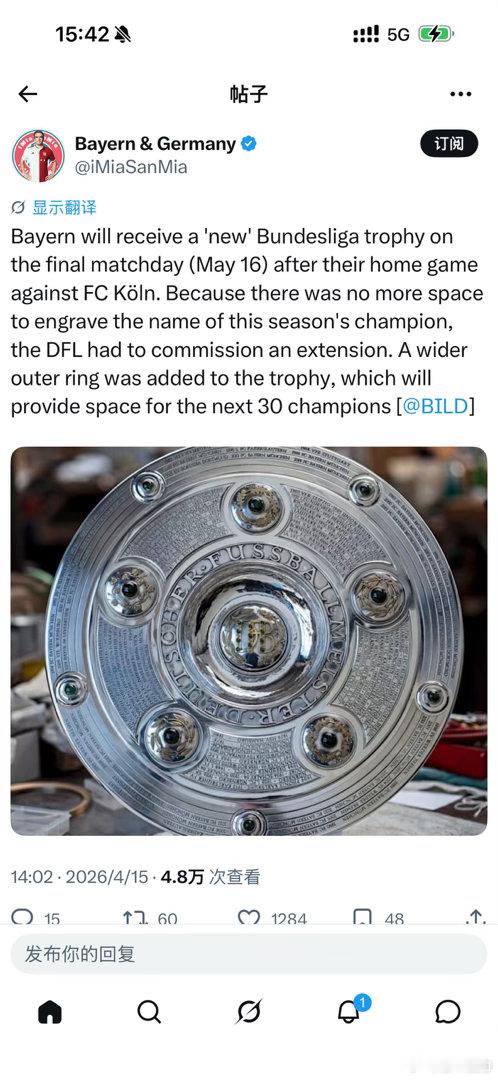 德甲冠军奖盘要更宽了。。