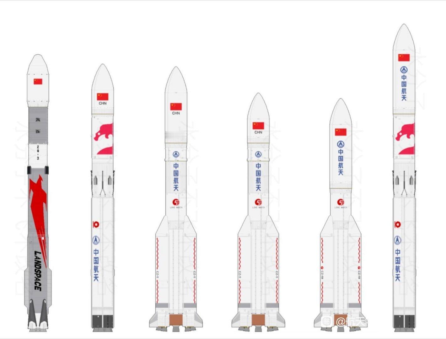 我国现役和在研几款主力火箭高度对比— —朱雀三号长征十号乙(短罩)长征五号(长罩)长征五号(短罩)长征五号乙长征十号乙(长罩)制图: