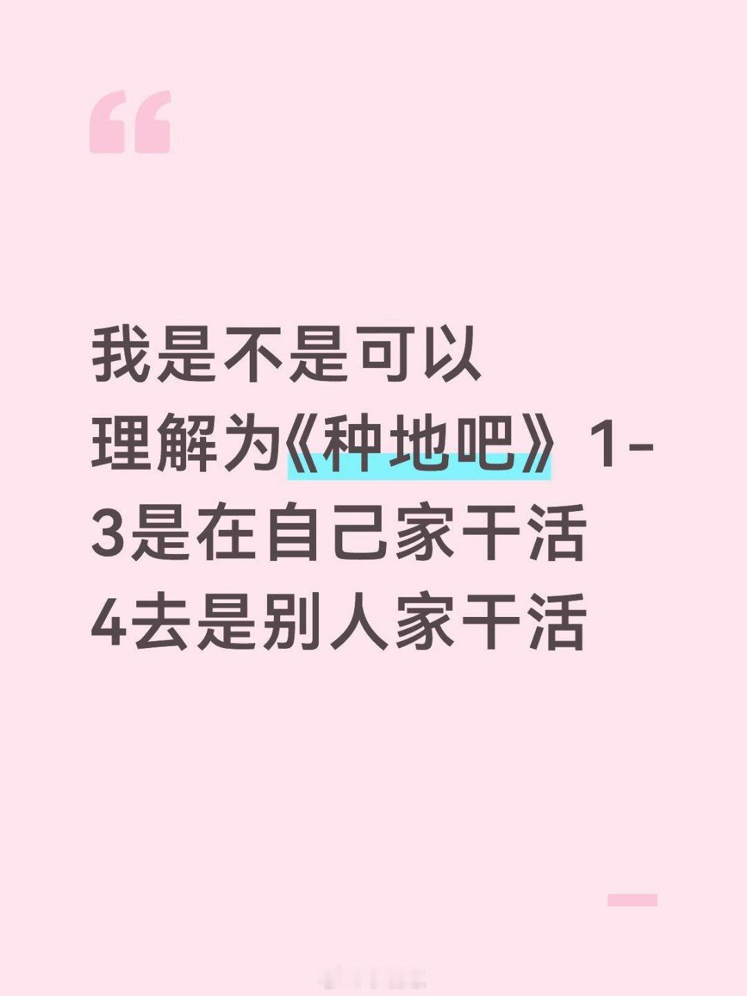 我是不是可以理解为《种地吧》1-3是在自己家干活4去是别人家干活
