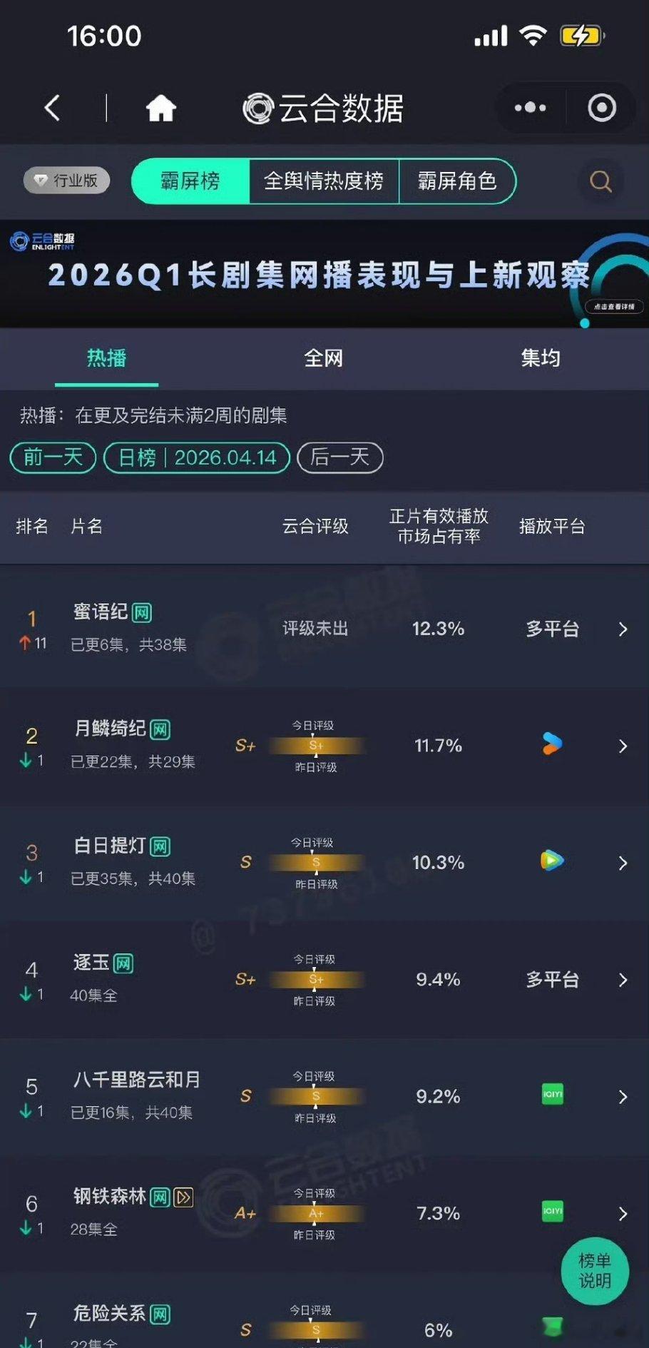 王迎导演,钟汉良、朱珠主演的都市剧《蜜语纪》云合登顶!意想不到的黑马剧!