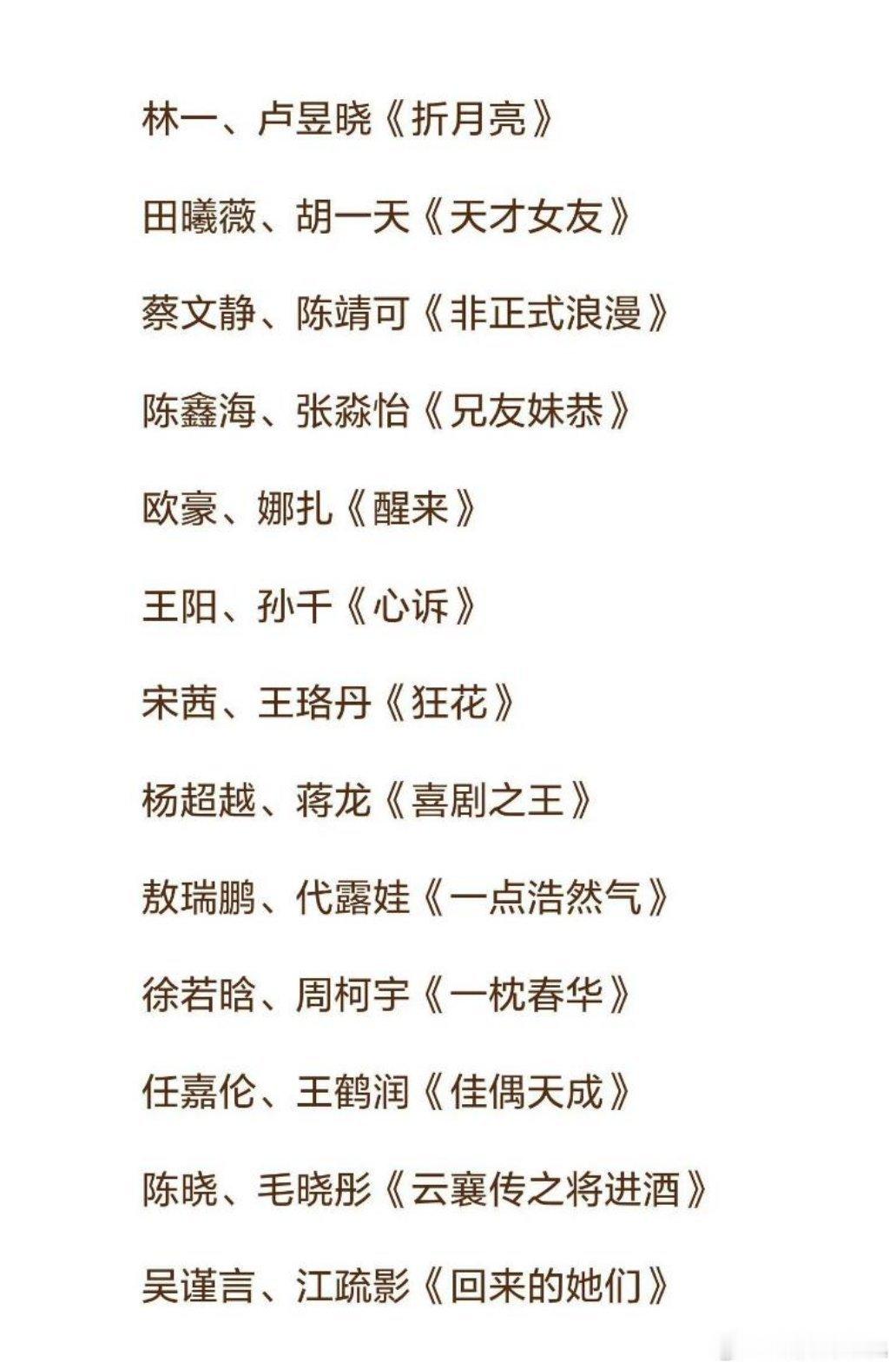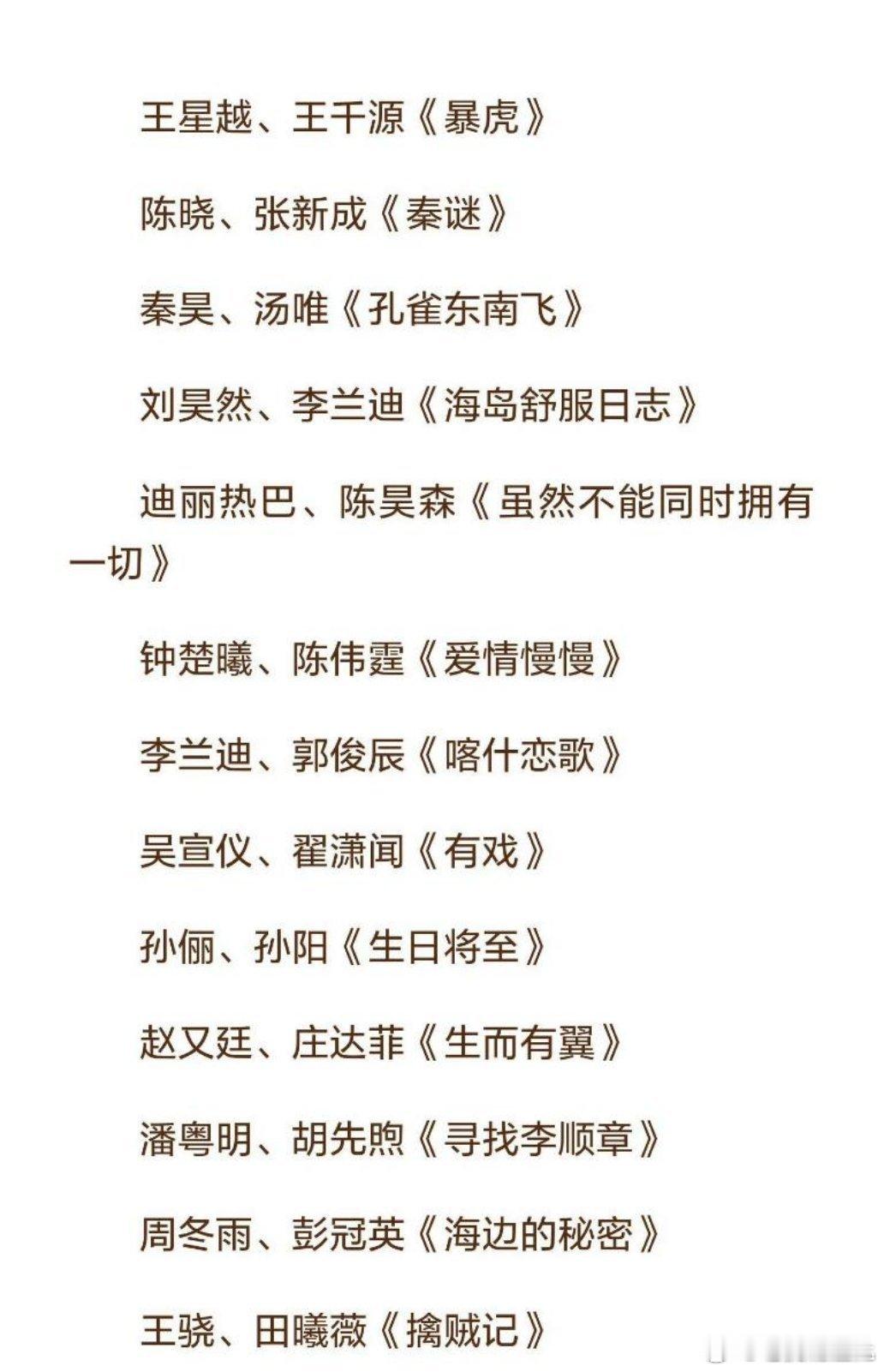 爱奇艺悦享会片单,有没有你想看的剧?肖战、倪大红《小城良方》李现、李一桐《长风起》任嘉伦、秦俊杰《深渊无间》王星越、徐若晗《红尘四合》鞠婧神、张云龙《来战》郭麒麟、宋祖儿《入局》虞书欣、张云龙《云初令》虞书欣、陈靖可《灿如繁星》敖瑞鹏、沈羽洁《不二之臣》杨紫、韩东君《祯娘传》侯明昊、艾米《雀骨》张凌赫、王楚然《这一秒过火》林一、卢昱晓《折月亮》田曦薇、胡一天《天才女友》蔡文静、陈靖可《非正式浪漫》陈鑫海张淼怡《兄友妹恭》欧豪、娜扎《醒来》王阳、孙千《心诉》宋茜、王珞丹《狂花》杨超越、蒋龙《喜剧之王》敖瑞鹏、代露娃《一点浩然气》徐若晗、周柯宇《一枕春华》任嘉伦、王鹤润《佳偶天成》陈晓、毛晓彤《云襄传之将进酒》吴谨言、江疏影《回来的她们》王星越、王千源《暴虎》陈晓、张新成《秦谜》秦昊、汤唯《孔雀东南飞》刘昊然、李兰迪《海岛舒服日志》迪丽热巴、陈昊森《虽然不能同时拥有-切》钟楚曦、陈伟霆《爱情慢慢》李兰迪、郭俊辰《喀什恋歌》吴宣仪、翟潇闻《有戏》孙俪、孙阳《生日将至》赵又廷、庄达菲《生而有翼》潘粤明、胡先煦《寻找李顺章》周冬雨、彭冠英《海边的秘密》王骁、田曦薇《擒贼记》