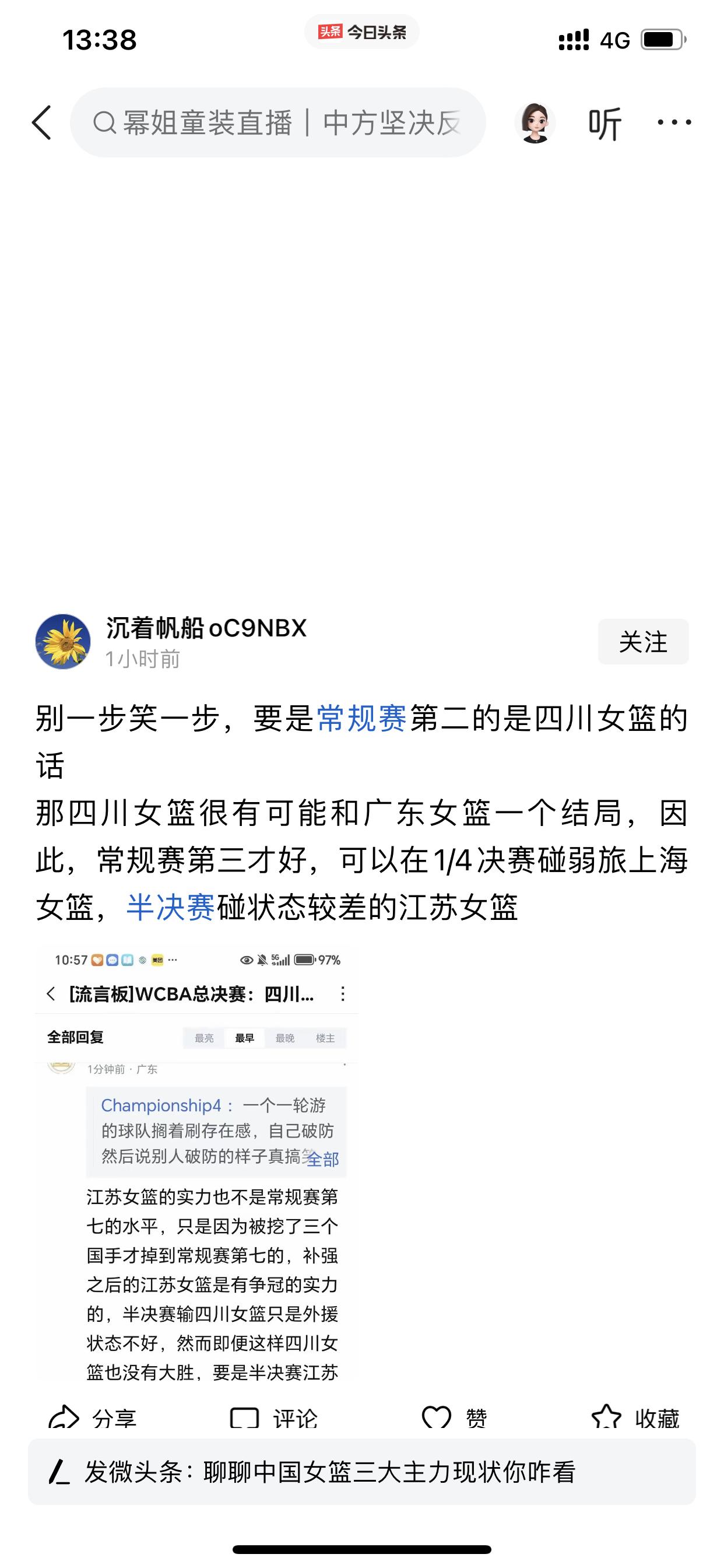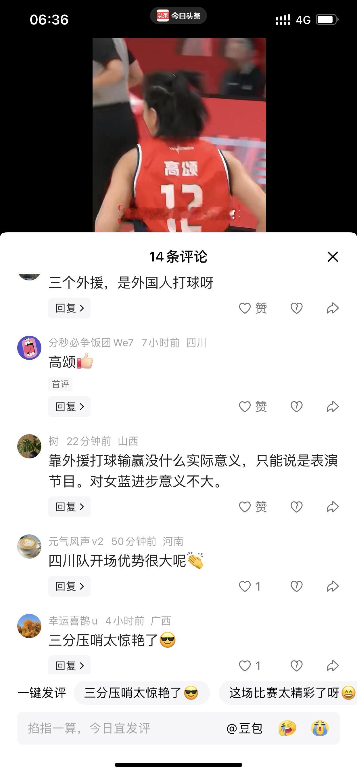 是否四川女篮昨晚输了,就能安静点? 还是说不管四川女篮输赢,都会有人跑出来展现自己的“口才”? 或者要四川女篮主动认输?表示不要总冠军?就能让下面截图中的言论者闭嘴? 其实我本不想发这篇微头条,但奈何我忍不住 我就是个普通人,我看到这样的事情,是真的很难去忍着 除非我不关注女篮,不支持四川女篮!