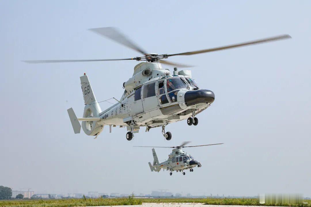 海航大Z-9C和Z-9。前者是一线退居二线,其中39和68号机的机顶左侧还有十多年前为参加亚丁湾护航加装的光电头基座。