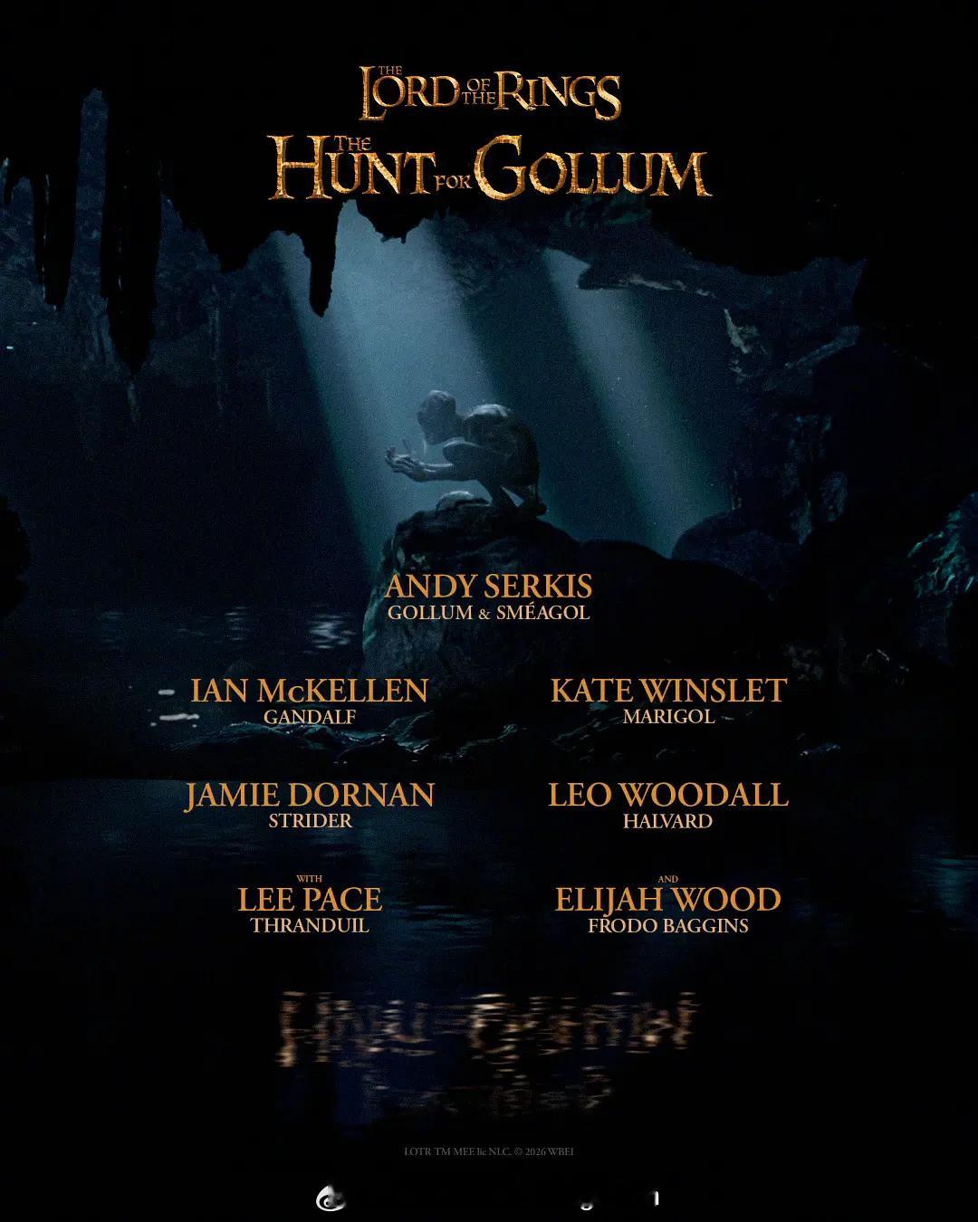 “指环王”系列新电影《指环王:猎捕咕噜》公布演员阵容,安迪·瑟金斯导演兼主演,部分主演回归,2027年11月27日上映!安迪·瑟金斯:咕噜伊恩·麦克莱恩:甘道夫凯特·温斯莱特:玛丽戈尔伊利亚·伍德:佛罗多·巴金斯詹米·多南:人皇阿拉贡李·佩斯:瑟兰迪尔利奥·伍德尔:哈尔瓦德