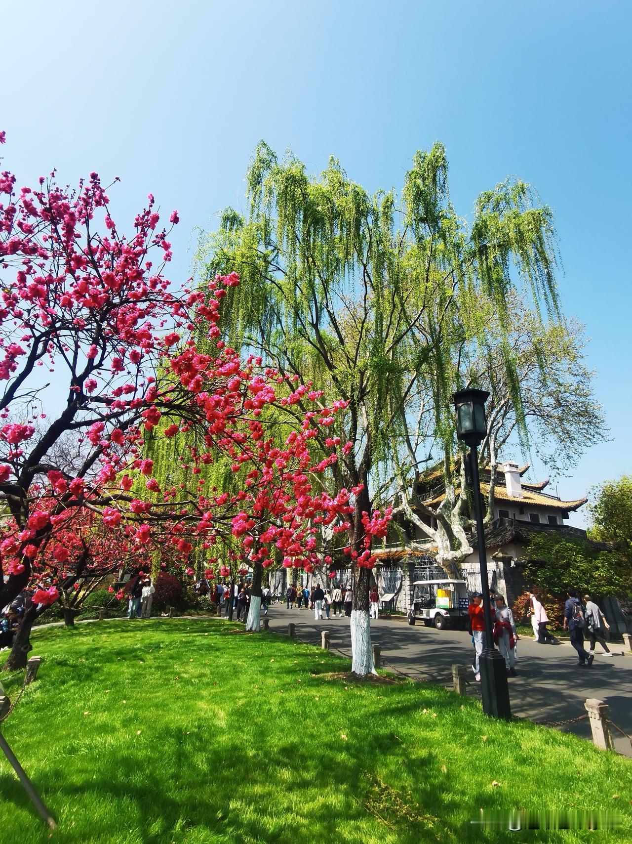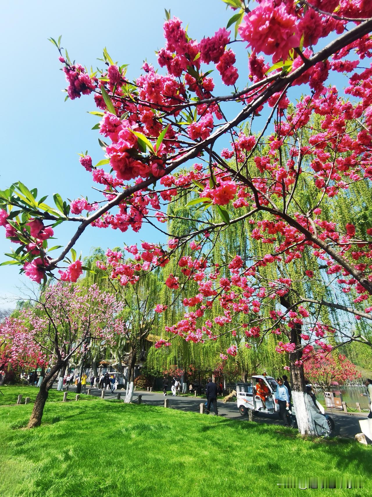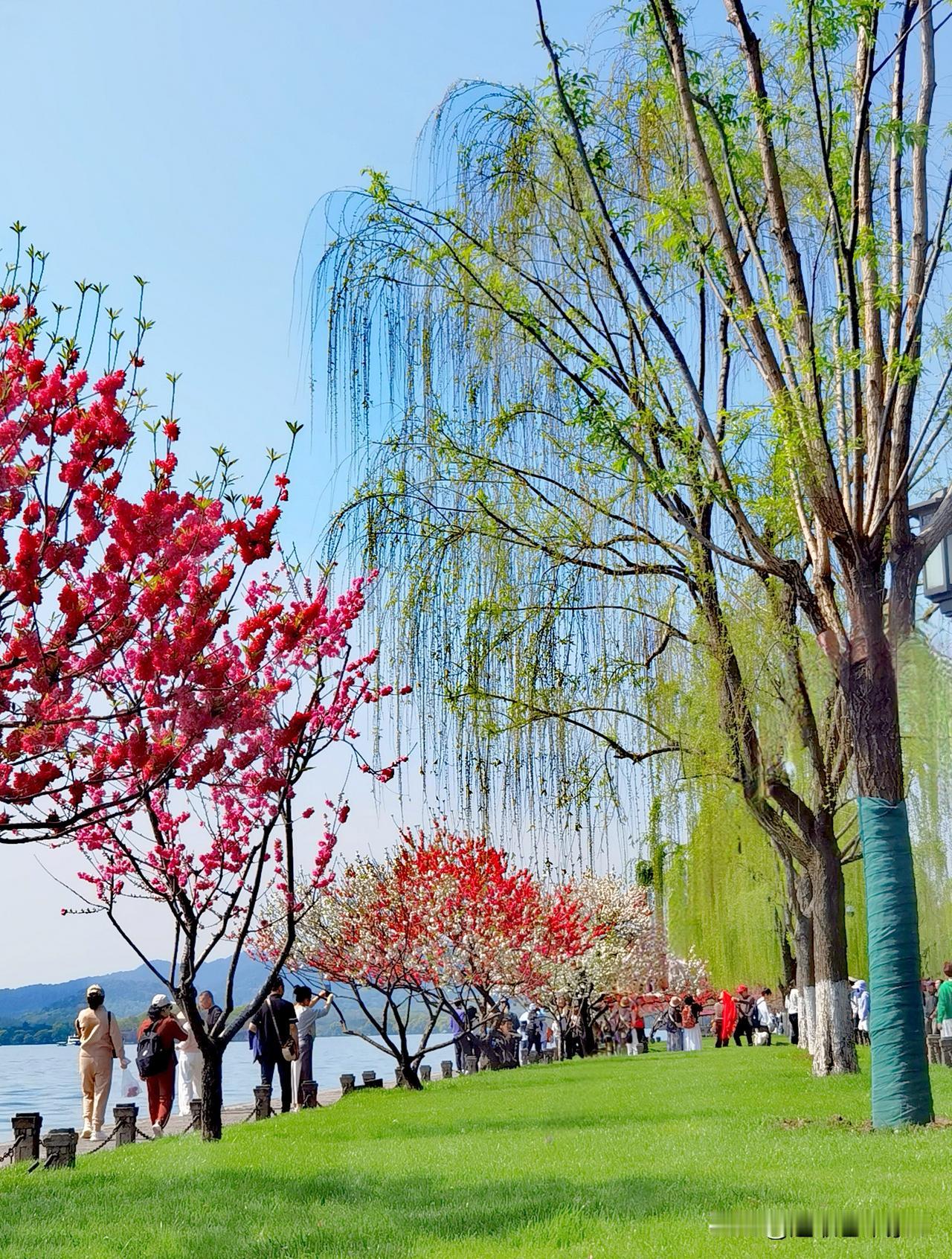 徒步杭州西湖北线景点,观景、赏花,‌白堤‌与‌苏堤‌是核心观赏区,呈现“桃红柳绿