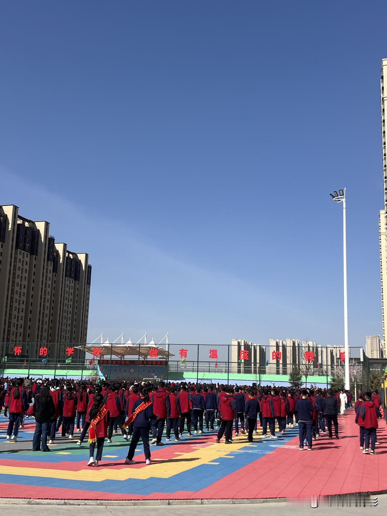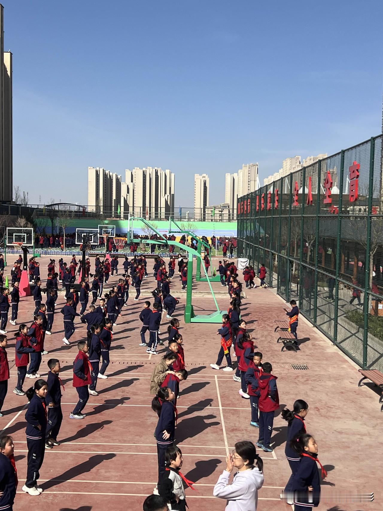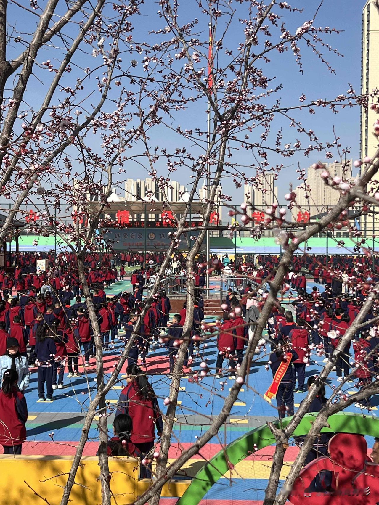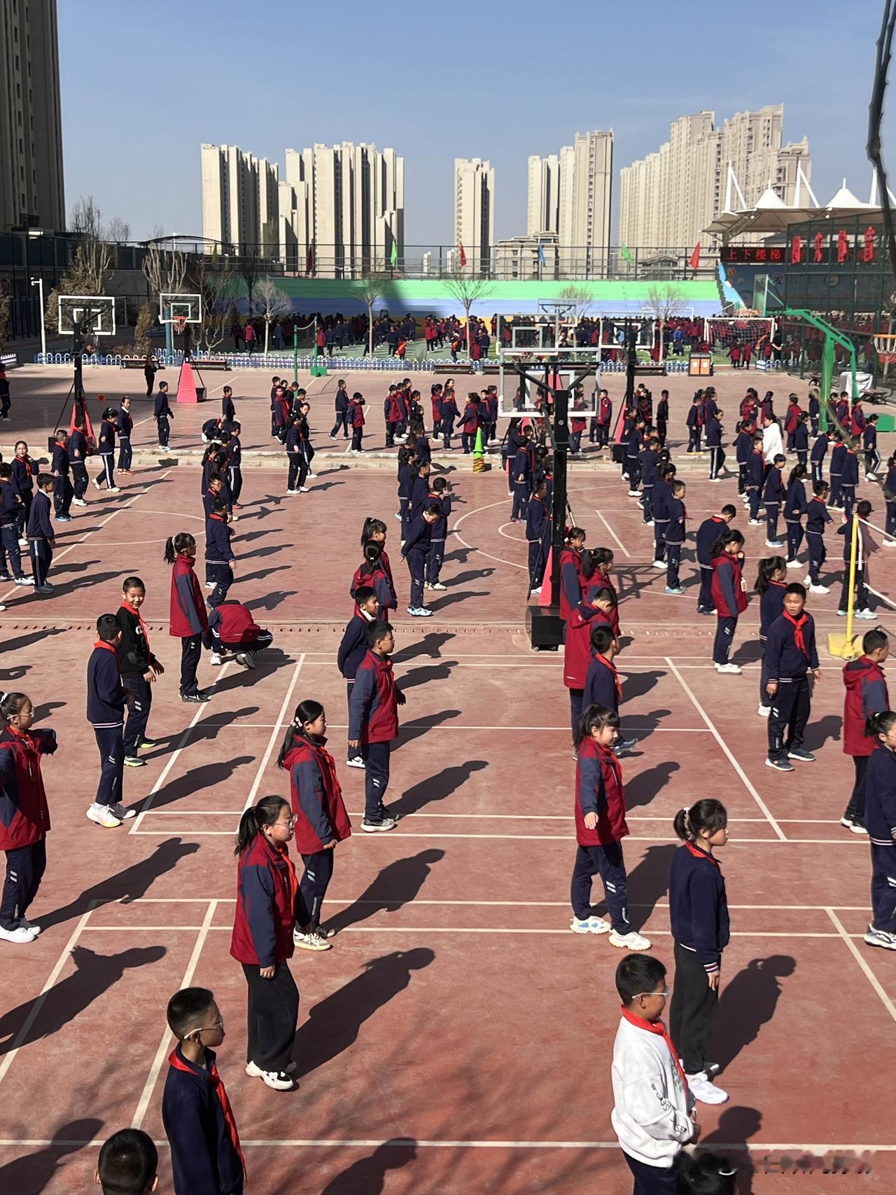 多少年过去了,早已记不清这样的情景。恍惚间,人生仿佛又回到了那个年代。童真可爱的孩子,那是我们每个人都曾经历过的时光。四月初的一个早晨,风和日丽,阳光明媚,此时此刻,兰州新区第十二小学里,我站在校院围墙外,正在观看小学生做体操运动。