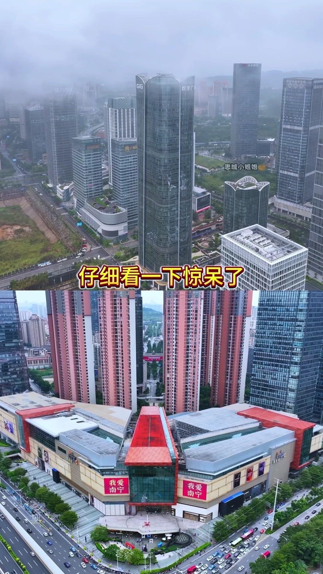 无人机高空俯瞰,南宁这两栋大楼造型太绝了!初看只觉奇特,仔细辨认竟有种熟悉的造型感,连细节都处理得超用心,不愧是设计师的神来之笔,看懂这个设计的人真的不简单~