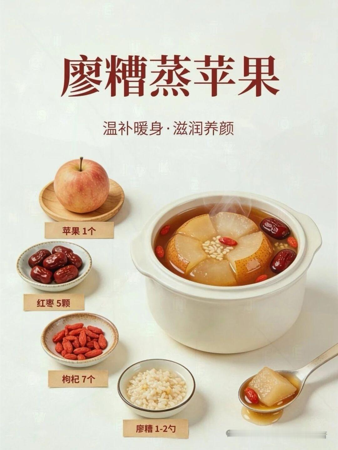 醪糟蒸苹果,升阳气补气血!