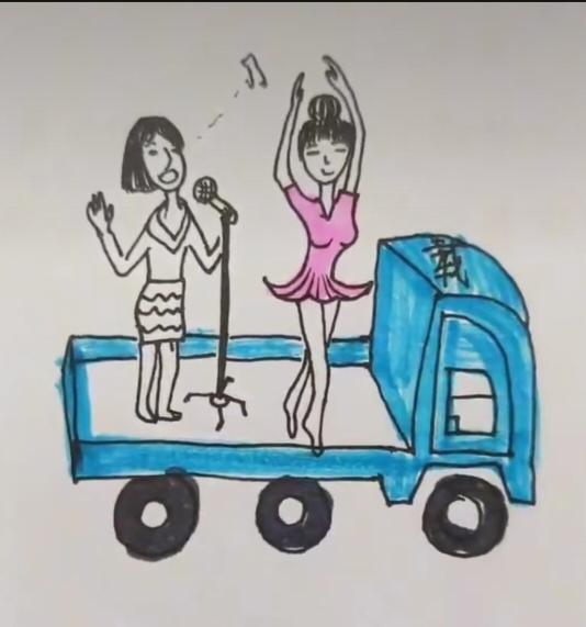 〔看图猜成语〕 图中画面真的好; 一辆卡车载美女; 美女唱歌和跳舞; 这个做法不