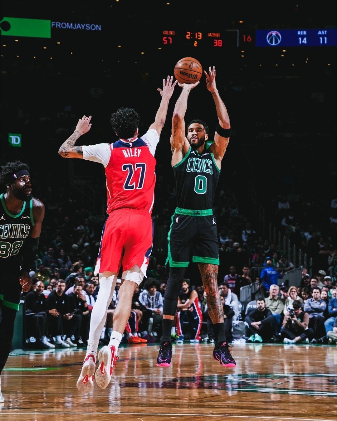 凯尔特人图库 本以为完全看不到塔图姆身影的2026赛季,他还是神速复出,出战了16场比赛,场均32分钟的时间里可以有21.8分10篮板5.3次助攻,41%和33%的命中率。总的来说,塔图姆的表现符合你的预期吗?凯尔特人热爱日记