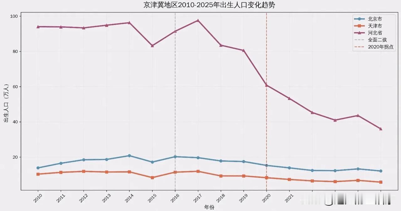 河北新生儿36万!京津冀暴跌背后,藏着4个比“断崖”更扎心的真相! 刚看到京津冀2010-2025的出生人口数据,我人都麻了! 2025年河北新生儿仅36.02万!对比巅峰2017年的97.58万,直接少了整整60%! 这哪里是人口下滑,这分明是三代人的生存现状大起底啊!👇 📉 真相一:河北的“断崖”,是给年轻人的“绝交信” 河北有多惨? 2010年,一个河北家庭生两三个娃是常态,当年出生94万+;2025年,河北家庭平均每户可能连1个娃都凑不齐了,出生人口只剩36万! 这跌幅不是“少生了”,是不敢生、生不起、养不动。河北的年轻人,要么流向北京天津挣命,要么留在本地被房贷、彩礼、教育费压得喘不过气。 生育率暴跌,其实就是年轻人对未来最沉默的抗议! 🤯 真相二:北京的“高冷”,天津的“无力”,都是压力的缩影 别觉得北京天津基数小就没事! - 北京:从2016年巅峰20.8万跌到2025年12.11万,超大城市也扛不住育儿成本、学区房、鸡娃压力。 - 天津:从2017年11.93万跌到2025年5.7万,直辖市都快成“生育空城”了。 京津冀全线下滑,说明“生不起”已经不是地域问题,而是全国性痛点! 👴 真相三:现在的36万,是未来的“养老炸弹” 2025年出生的这36万河北宝宝,15年后就是2040年的成年人。 到那时候,河北的中小学可能要面临生源不足、合并裁员;而现在的中年人,到时候会变成嗷嗷待哺的老人。 现在的少生,就是未来的老龄化炸弹。 更扎心的是,2010年出生的那批130万+孩子,现在正值升学、就业、买房的黄金期,他们正在撑起京津冀的房价和消费;而未来的劳动力,却在急剧减少! 💔 真相四:我们这代人,正在见证“生育观念”的彻底清零 2010-2015年,京津冀出生人口加起来超300万,那时候还能追追全面二孩的红利; 2020年后,出生人口断崖式腰斩,说明“多子多福”彻底过时,年轻人只想“精致单身”、“少生优育”。 养娃从“传宗接代”变成了“奢侈品消费”。 你身边还有年轻人愿意生二胎、三胎吗?反正我身边的朋友,基本都在说“一个就够,甚至不生”。 💬 最后聊聊 看完这组数据,我只有一个感慨: 人口少了,房子谁来买?学校谁来上?养老金谁来交? 河北出生人口跌破36万,不是简单的数字变化,是时代的警钟。 你怎么看? 是支持鼓励生育政策加码,还是觉得顺其自然? 评论区聊聊你的真实心声! 京津冀 河北人口 新生儿 人口暴跌 真实生活